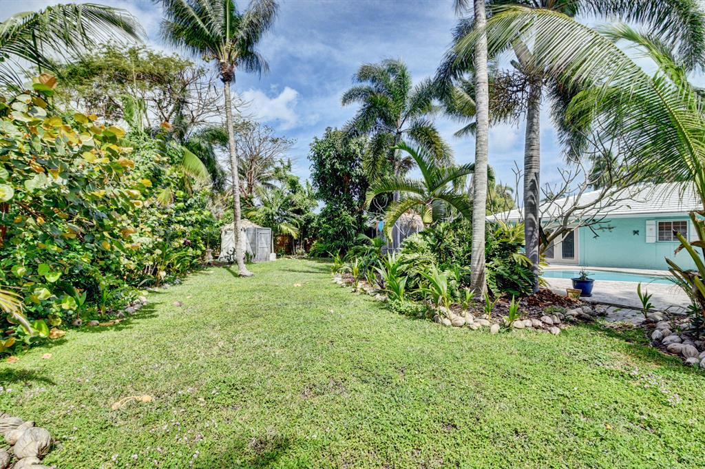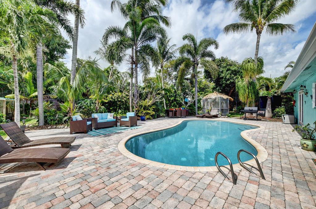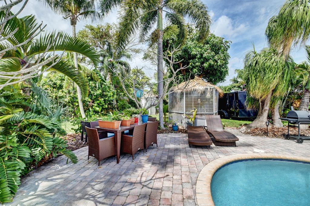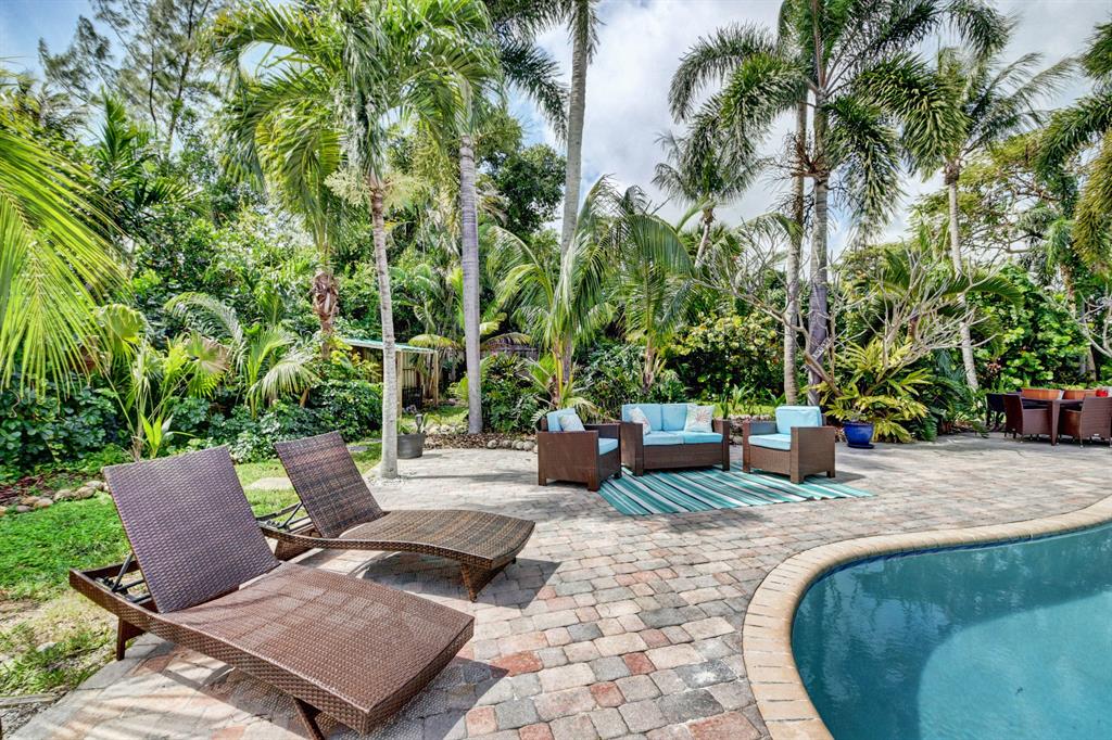 Breathe easy in this private, tropical paradise located in Boca Harbour with no HOA fees and close to A-rated schools. Relax by your free form pool (Diamond Brite) or enjoy a family gathering in this enormous (newly fenced in) backyard (.37 acres) that can accommodate all your events. Open floor plan with 3 bedrooms and 2 updated bathrooms. Master and guest bedrooms outfitted with custom closets (2019). Gorgeous kitchen equipped with granite counter tops, stainless steal appliances, wine cooler, and stunning island. Newer laminate flooring throughout with a bonus room that can be converted into a 4th bedroom. Great location in East Boca, close to Mizner, minutes from Delray and the beach!