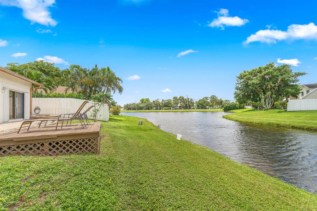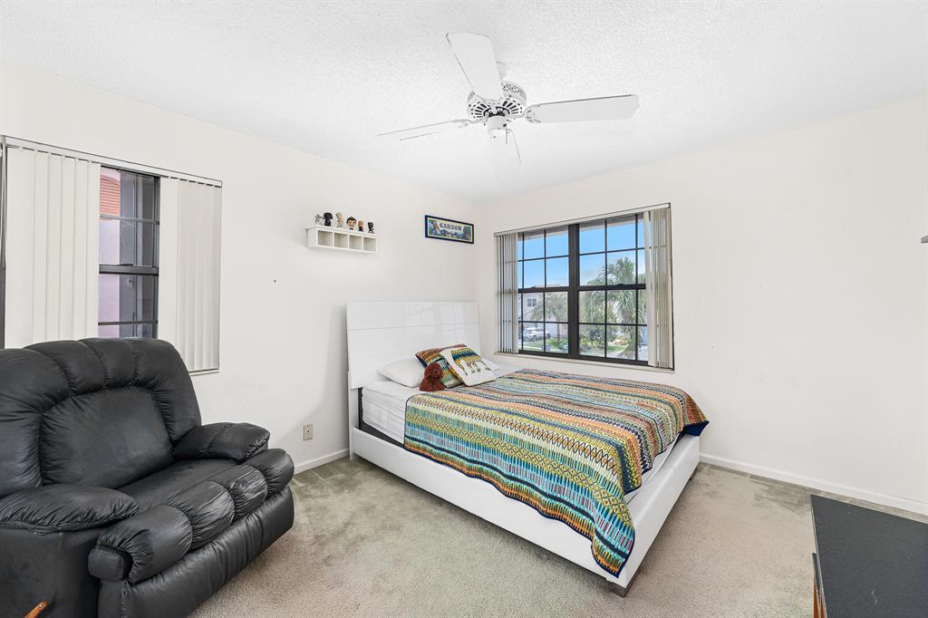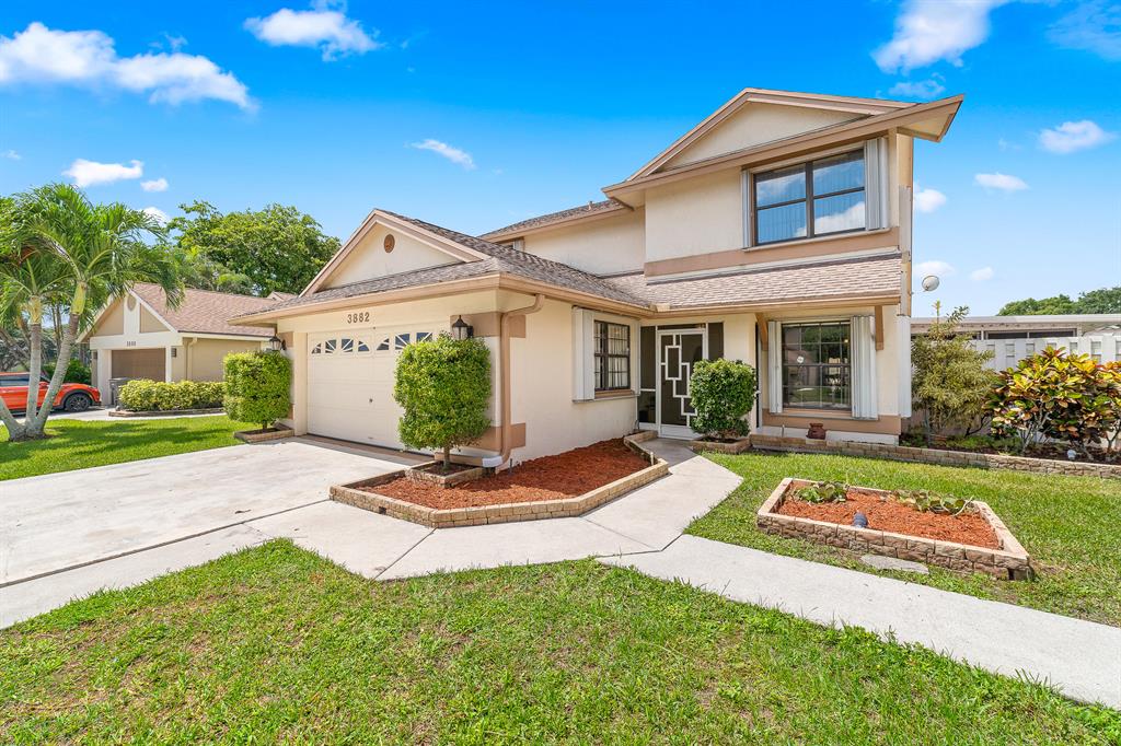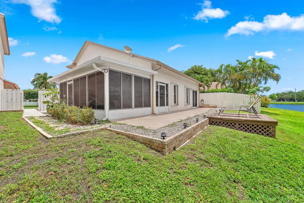 This two story home, featuring 3 bedrooms, 2.5 bathrooms and a 2 car garage is centrally located in Palm Club West Village. The main living area has new wood-look tile throughout. The home features a Florida room for extra living space. The spacious first floor master bedroom overlooks the lake and showcases a built-in closet and vaulted ceilings. Upstairs you will find 2 bedrooms and a full bathroom. Accordion shutters on the upstairs windows! This backyard patio has a wood deck with a great lake view. The carpet will be replaced before closing or a credit offered. Conveniently located to the Florida Turnpike and I-95 and just minutes away from shopping and dining! Please make sure to take a look at the 3D Tour / Virtual Walk-Thru Video!