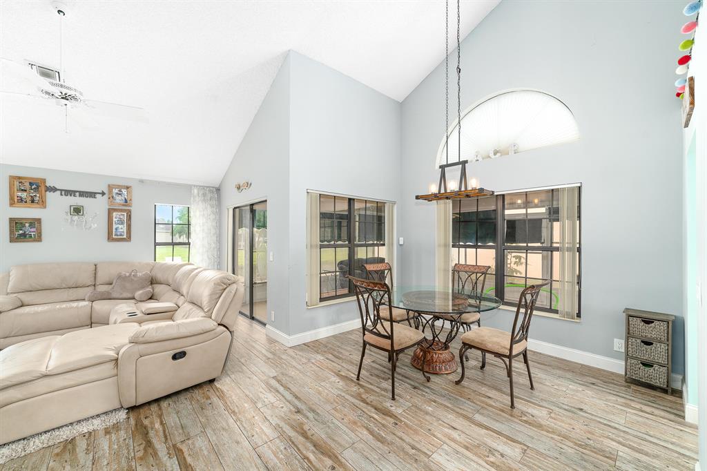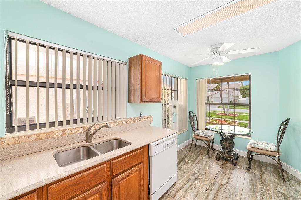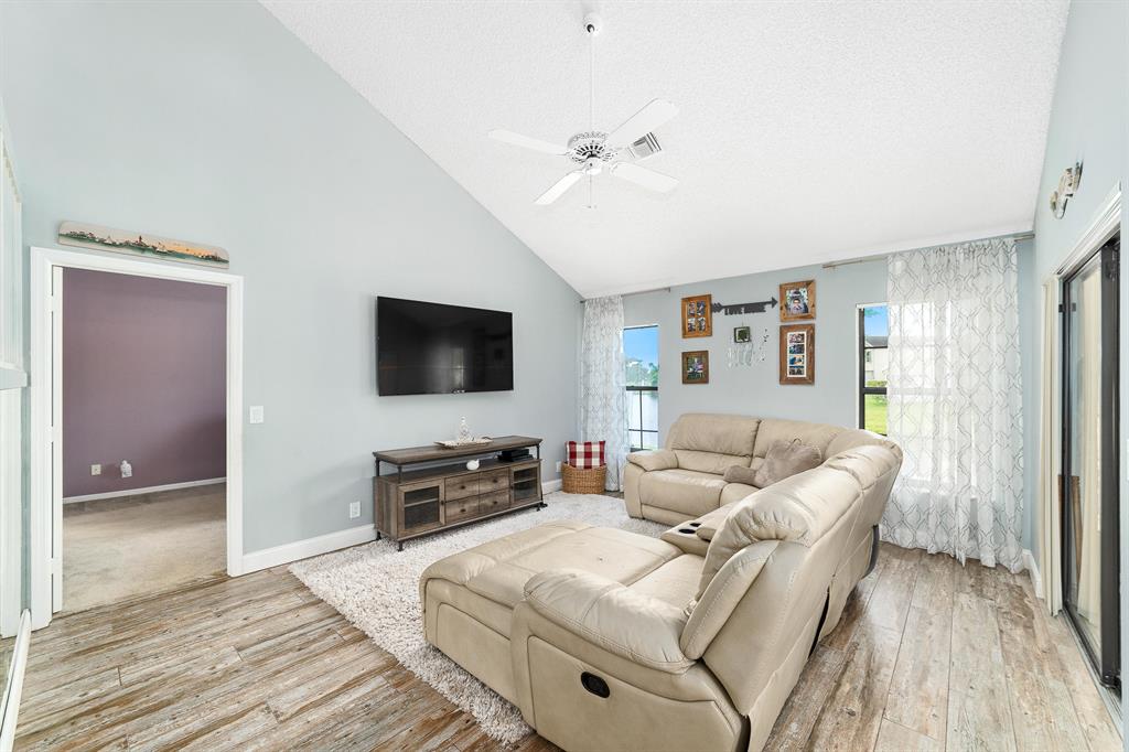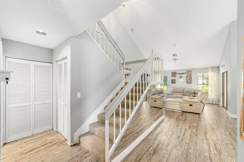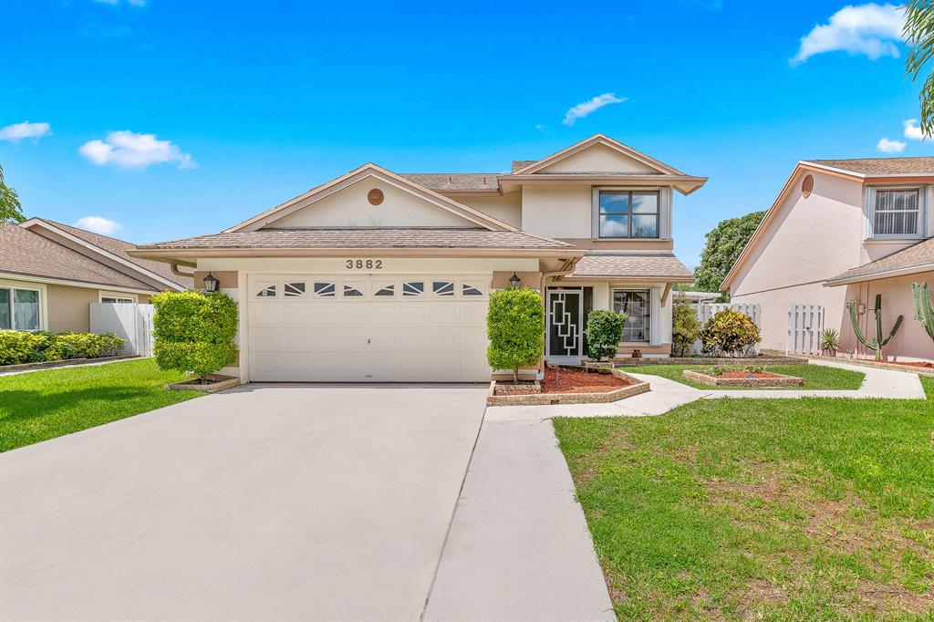 This two story home, featuring 3 bedrooms, 2.5 bathrooms and a 2 car garage is centrally located in Palm Club West Village. The main living area has new wood-look tile throughout. The home features a Florida room for extra living space. The spacious first floor master bedroom overlooks the lake and showcases a built-in closet and vaulted ceilings. Upstairs you will find 2 bedrooms and a full bathroom. Accordion shutters on the upstairs windows! This backyard patio has a wood deck with a great lake view. The carpet will be replaced before closing or a credit offered. Conveniently located to the Florida Turnpike and I-95 and just minutes away from shopping and dining! Please make sure to take a look at the 3D Tour / Virtual Walk-Thru Video!