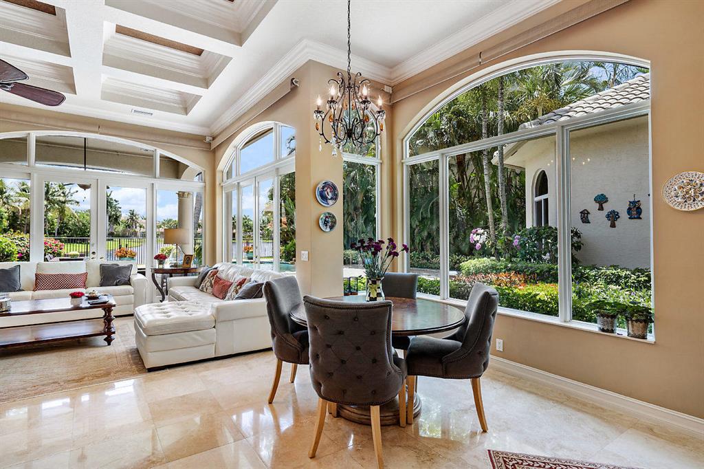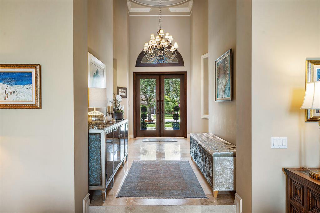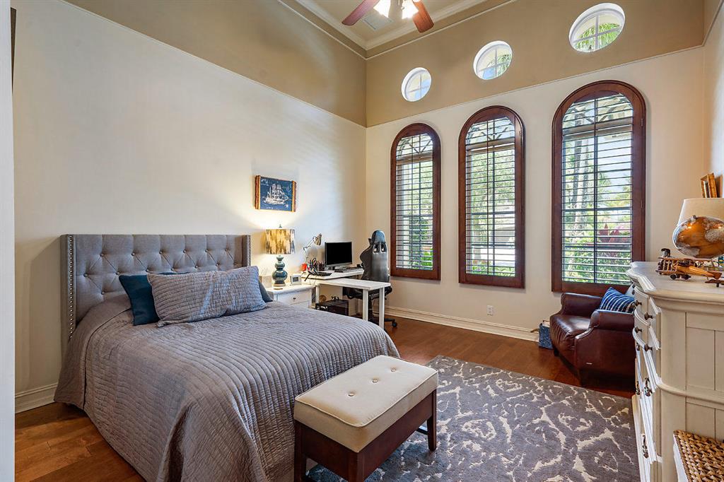 Custom 1 of a kind single story home in The Oaks sited on a quiet cul-de-sac with sweeping lake views. Featuring 4 bedrooms plus a huge elegant office, 4 full baths, and a cabana bath. The family room is complimented by boxed coffered ceilings overlooking the sparkling pool, serene lake and lush greenery. The spacious gourmet kitchen boasts stainless steel appliances, granite counter-tops, gas cooktop, and large island. The Master suite oasis features his and her vanities,and built-in closets and direct access through French doors to the lakefront pool. Other features of this home include whole house impact glass,a full house generator, over- sized patio and paved pool deck. Remote Control window treatments and remote automatic patio screens. Must be seen to be appreciated.