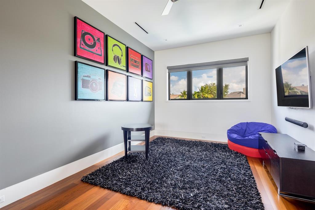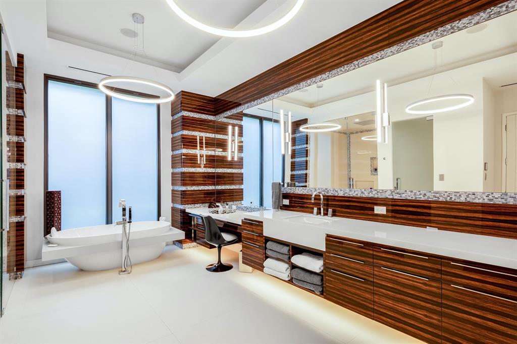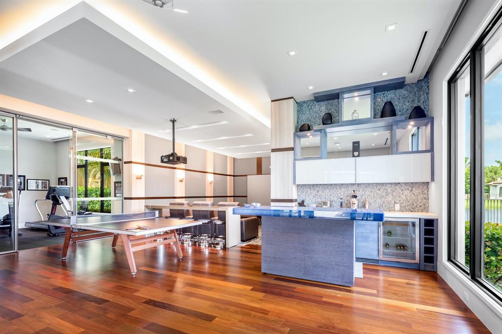 Stunning 2 story contemporary home in the highly sought after community The Oaks. Home features sweeping lake views, a first floor master suite, home gym, custom bar for entertaining and theatre room.