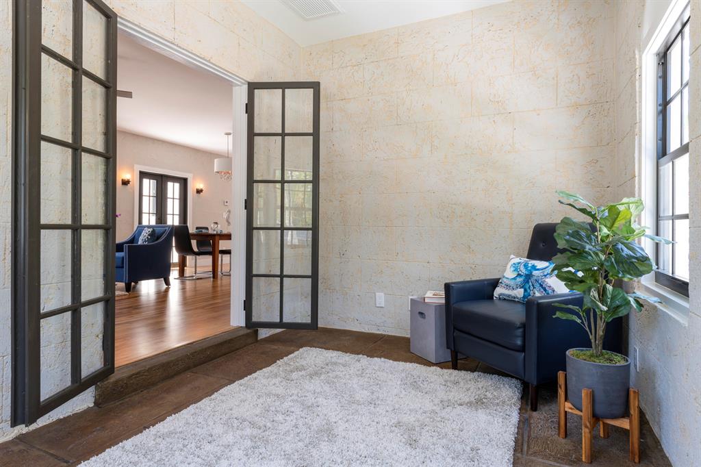 843 Claremore is the quintessential Flamingo Park home, but with a distinctive twist. Historic and contemporary architectural work seamlessly together to create a wonderful living experience. Just renovated, this 1925 Spanish Colonial house exudes the warmth and grace of old Florida. Its charm takes hold immediately as you enter through the original Pecky Cypress door. Once inside, the space is open and airy. Sun fills the rooms through an abundance of windows. Views to the shimmering pool become a focal point through a wall of French doors. Old world touches and modern interventions sit comfortable together. While the den enjoys rusticated walls and floors - original to the house - the kitchen, baths and bedrooms are on trend - modern and elegant Glistening white oak floors run throughout