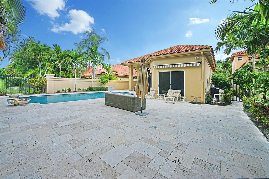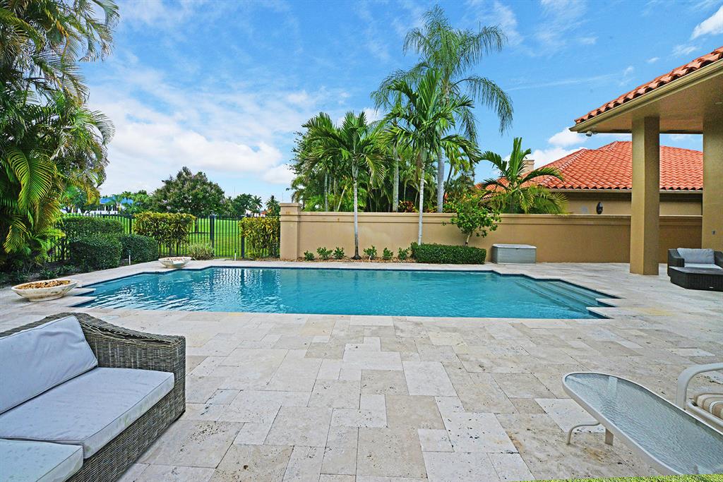 Beautiful Three Bedroom one story golf course residence with spacious pool and patio in Boca Grove. Situated on a pavered street in Coventry in the Grove, where the exterior maintenance is provided for you. The residence features custom cabinetry and volume ceilings with an open floor plan and plenty of light. The split bedroom plan allows for privacy for all guests. The luxurious master suite has outfitted closets and a large master bath. Dine in the formal dining room or enjoy a meal in the breakfast area. The Great Room is perfect for entertaining and leads to an over-sized pool and patio with garden and golf vistas. Relax in your private backyard with a view of the course in the distance. Come experience all that Boca Grove has to offer.