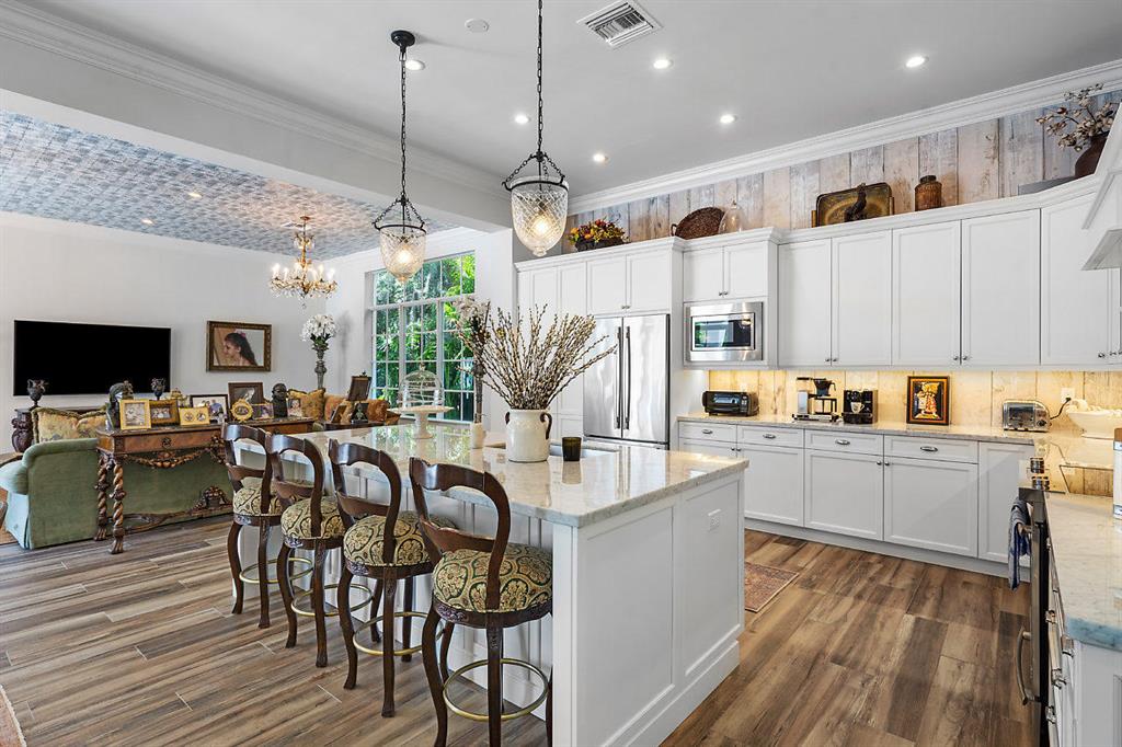 Distinguished custom built in 2016 with spectacular exterior and interior architectural elements, this prestigious Palm Beach-inspired residence features 5 bedrooms, 5 1/2 baths with 4,432 sq ft of air conditioned living space in a pristine open airy living environment fashioned with imported designer finishes and attention to detail throughout. The first floor includes a great room design for today's living, a gourmet chef's kitchen with state of the art appliances, breakfast counter top, all designed for effortless entertaining or casual living. The master wing includes a grand master suite with a comfortable loft entry with a private balcony, luxurious master bathroom, and generous closets. In addition to the master suite, there are three en suite bedrooms upstairs. The 5th en suite