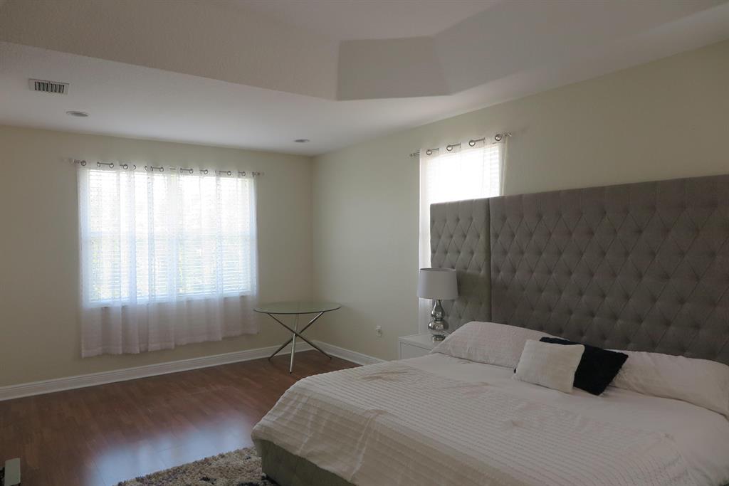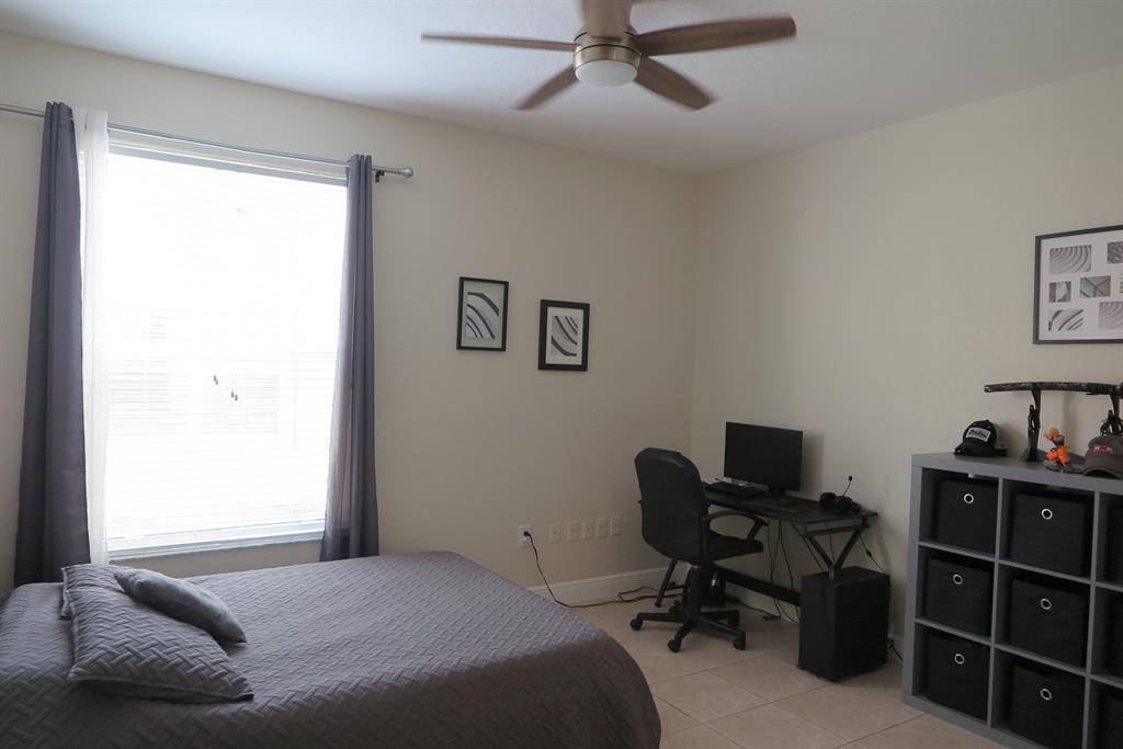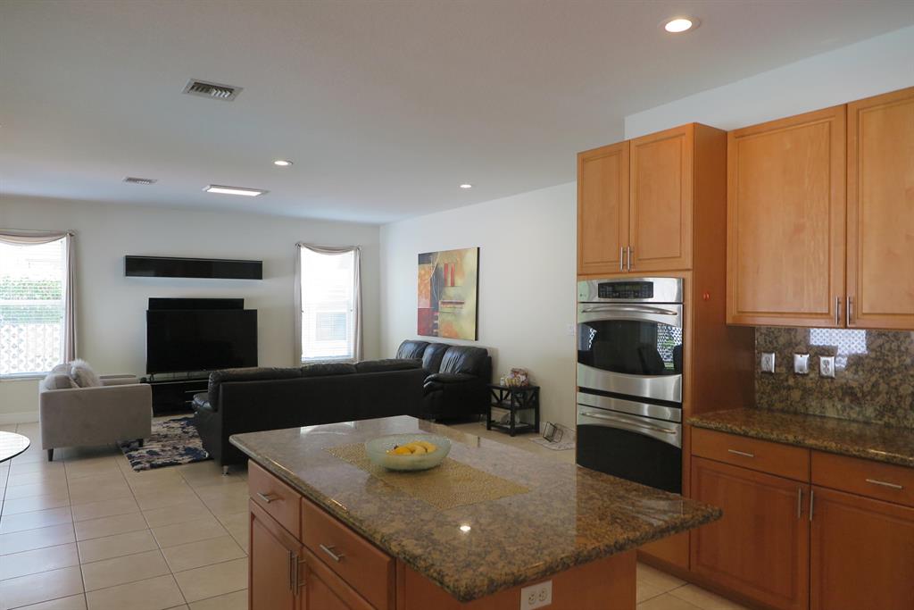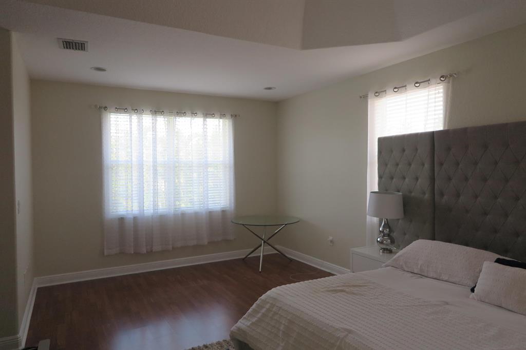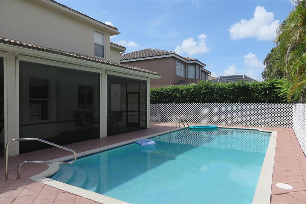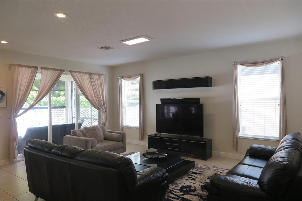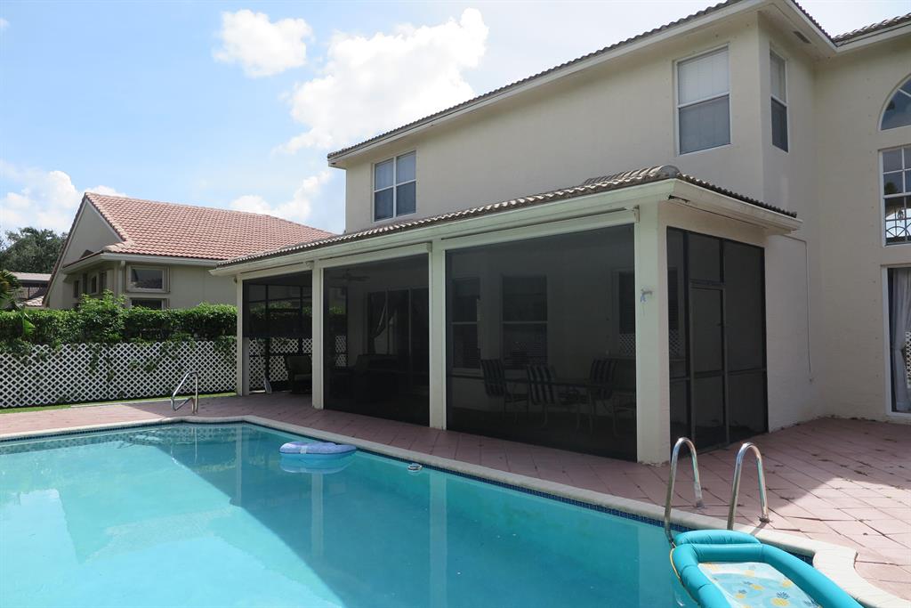 Immaculate home in beautiful manned gated community with resort style amenities(clubhouse, tennis, pool, gym). Home has lovely private tropical pool area w/ covered seating area with versatile retractable electric screened patio. Pool has heater. This five bedroom, three bath home has a formal living-room and dining room with a large island kitchen opening to the breakfast area and spacious family room. Souring ceilings in main living area. Four bedrooms and loft are upstairs with an additional bedroom down stairs offering great versatility. Laminate and tile throughout the home No carpet! Three car garage. All conveniently located within walking distance of the Elementary and Middle Schools as well as a County Regional Park. Come view this stunning home!