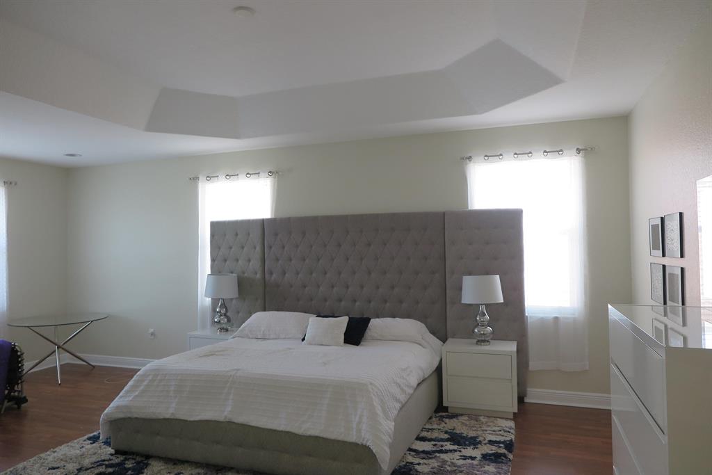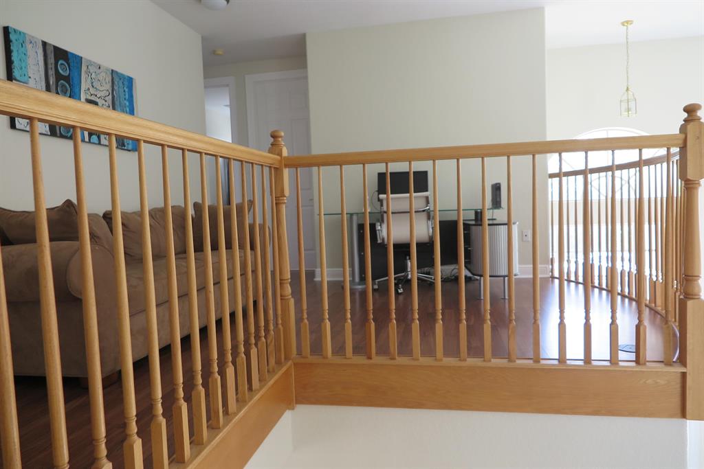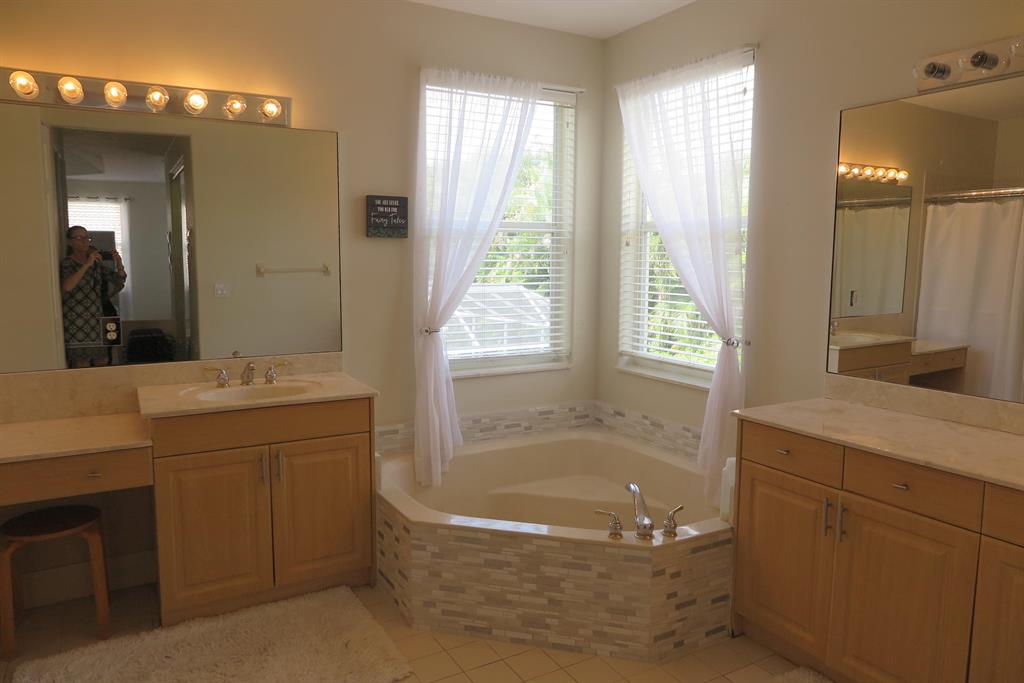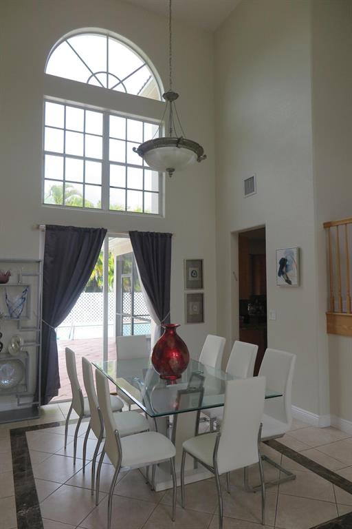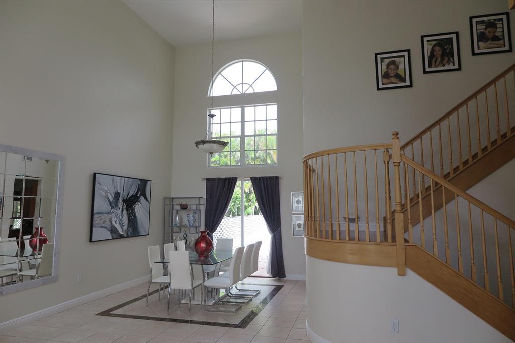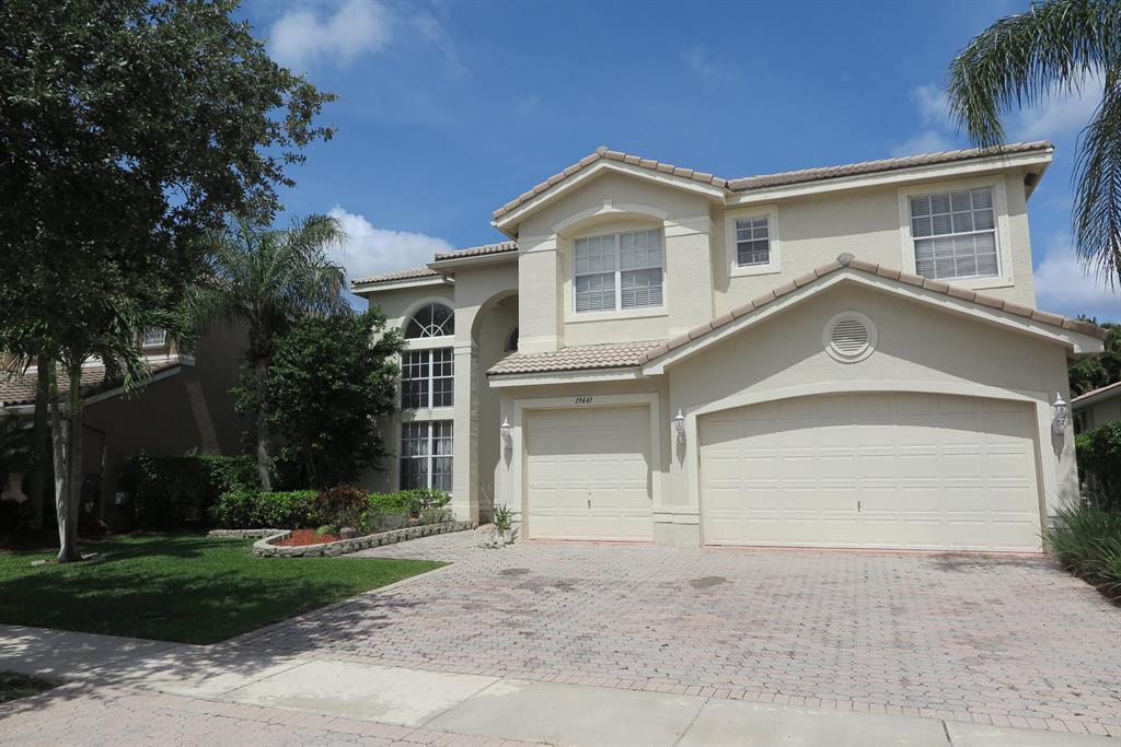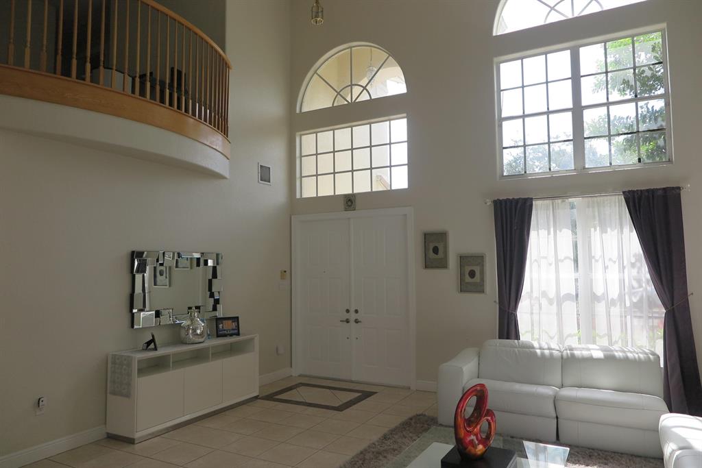 Immaculate home in beautiful manned gated community with resort style amenities(clubhouse, tennis, pool, gym). Home has lovely private tropical pool area w/ covered seating area with versatile retractable electric screened patio. Pool has heater. This five bedroom, three bath home has a formal living-room and dining room with a large island kitchen opening to the breakfast area and spacious family room. Souring ceilings in main living area. Four bedrooms and loft are upstairs with an additional bedroom down stairs offering great versatility. Laminate and tile throughout the home No carpet! Three car garage. All conveniently located within walking distance of the Elementary and Middle Schools as well as a County Regional Park. Come view this stunning home!