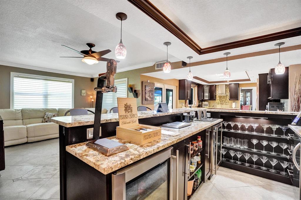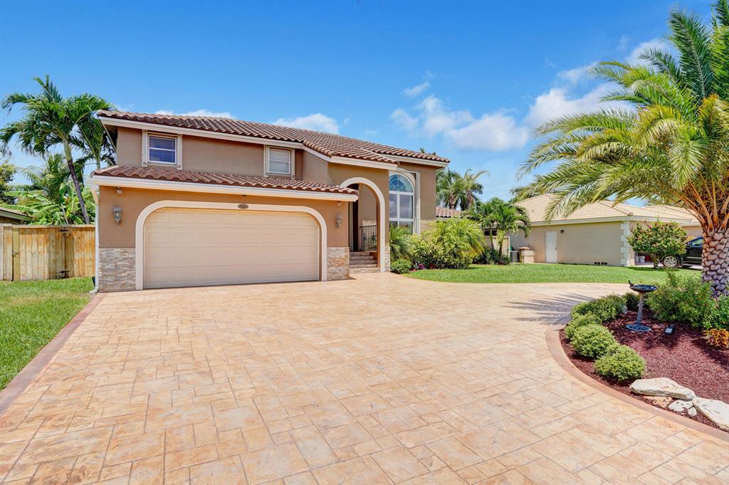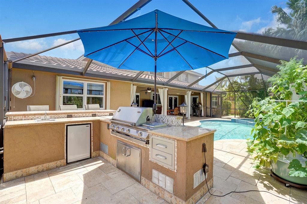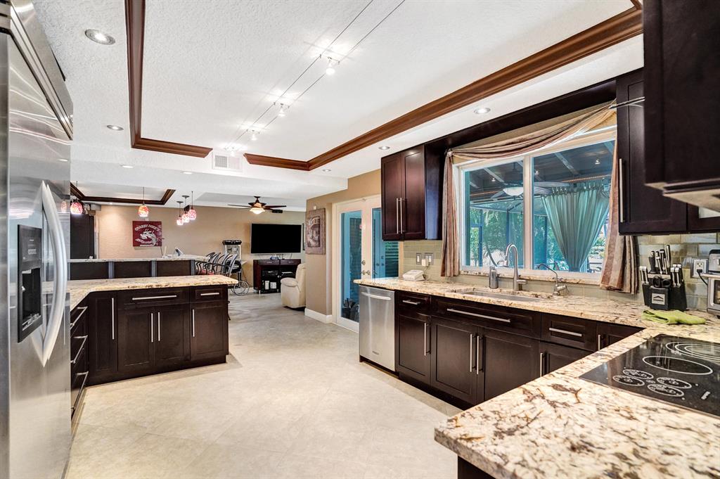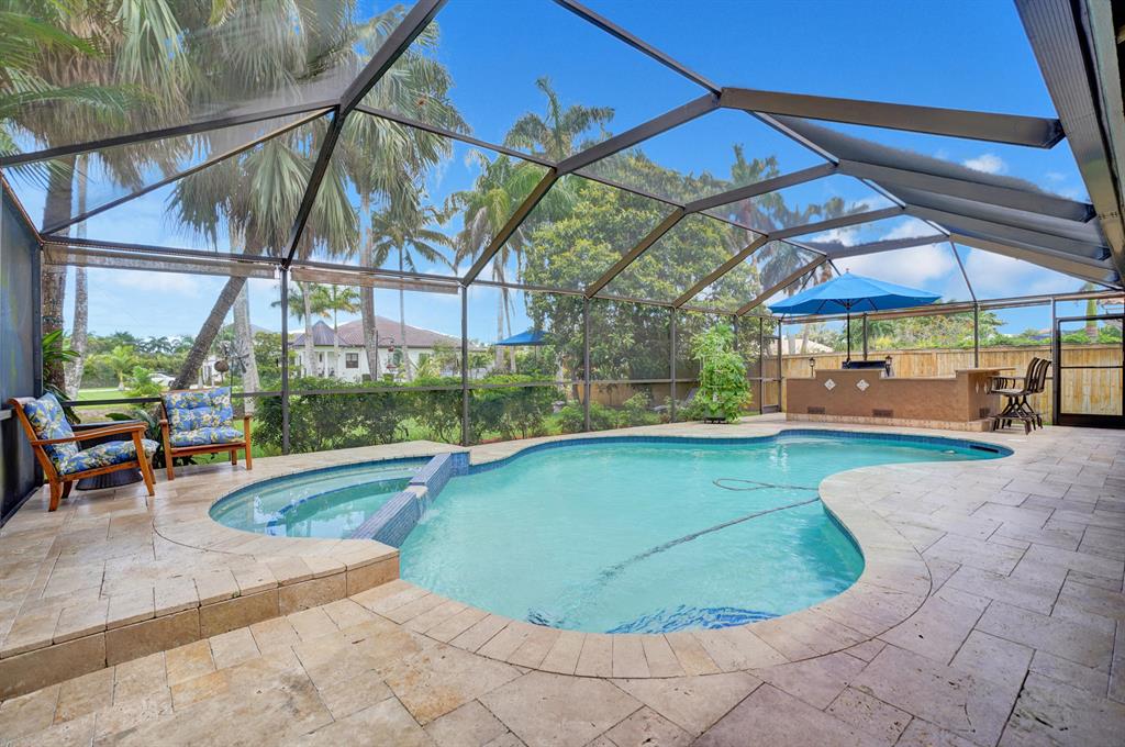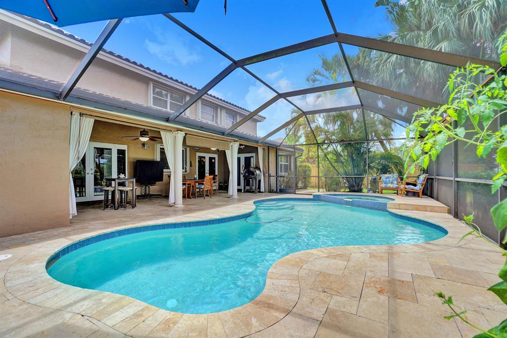 HAWKES BLUFF OF IVANHOE, Large Oxford Model, Two-Story Waterfront Totally Updated Screened-in Pool Home. This is a One-of-a-Kind Tropical Paradise! Great for Parties or Sitting Quietly watching a Beautiful Sunset. Large Backyard on canal adorned with Landscaping and Palm Trees. Every Room in this Home has been Upgraded. Starting with Custom Tile Flooring on Ground Floor; Screened-in Patio with Travertine Pavers and Heated Salt Pool & Jacuzzi, and Outdoor Summer Kitchen with granite countertop, Grill, and Refrigerator. Two, Fully Updated Master Suites. Master Suite on Ground Floor with its Own A/C and Impact French Doors that open up to Pool Area and Large Garden Master Bathroom has Huge Shower with Dual Shower heads, Rain-head and Body Sprays and Garden Tub, (see additional remarks)