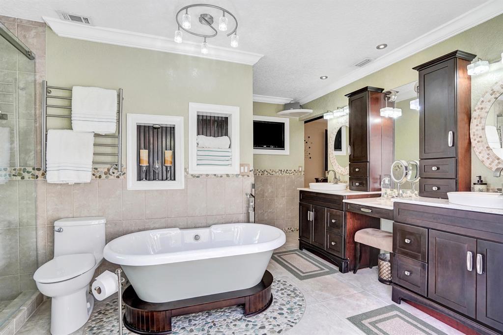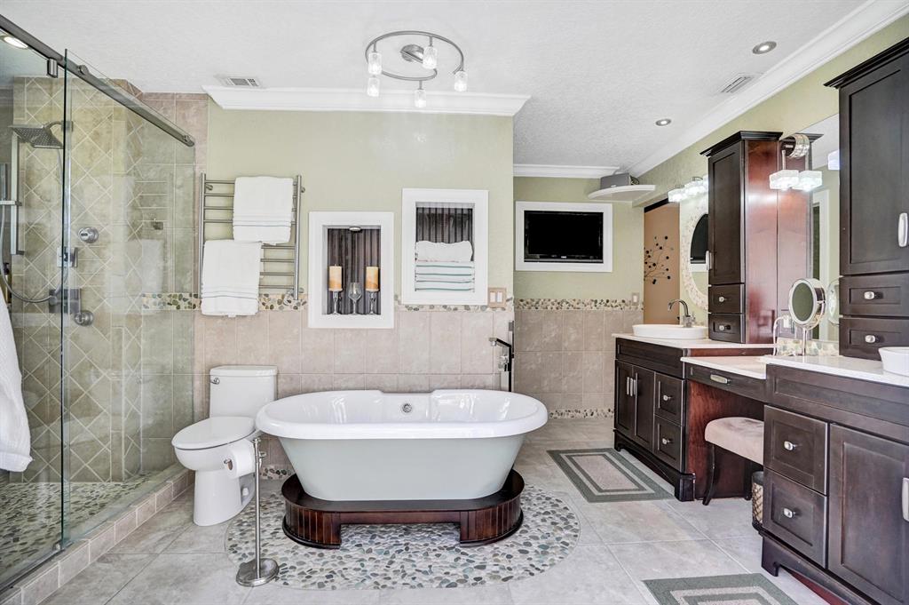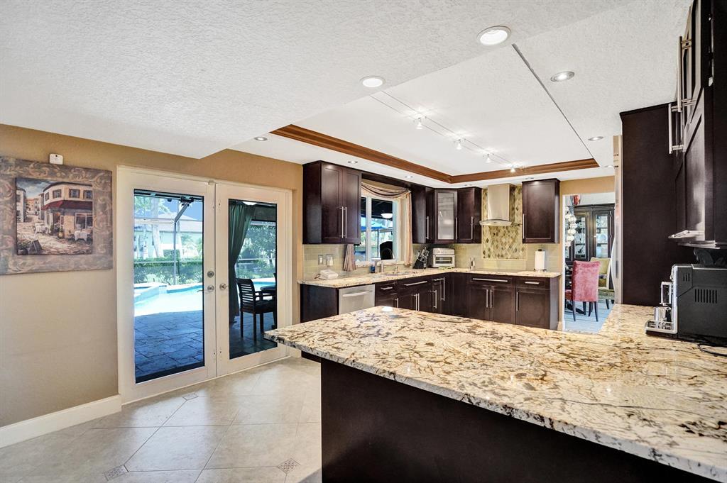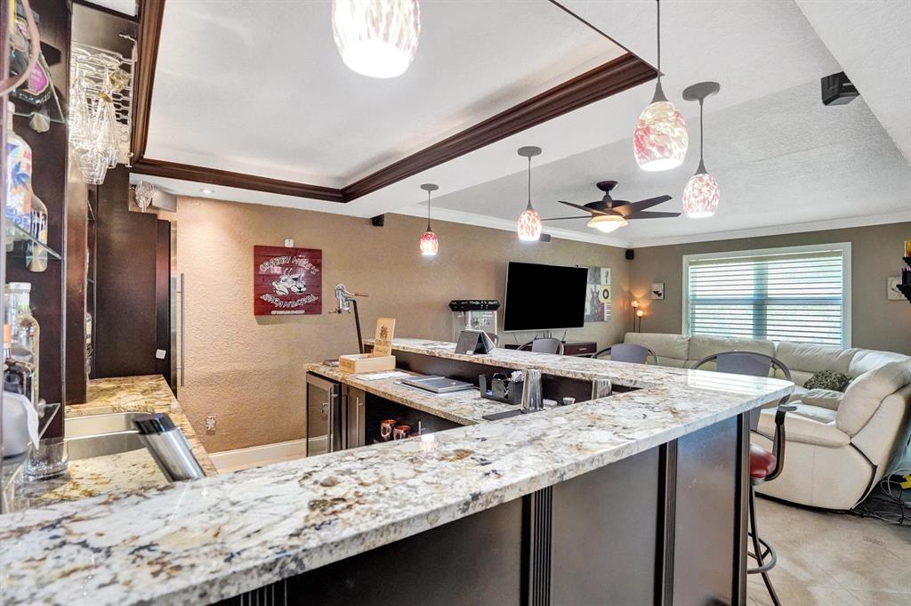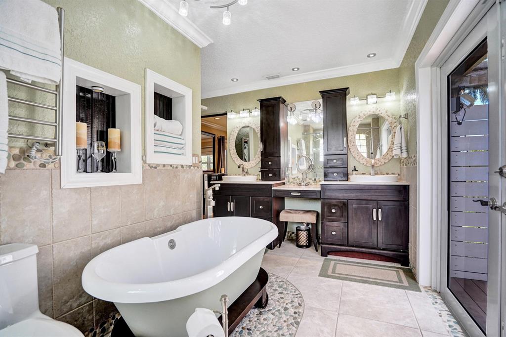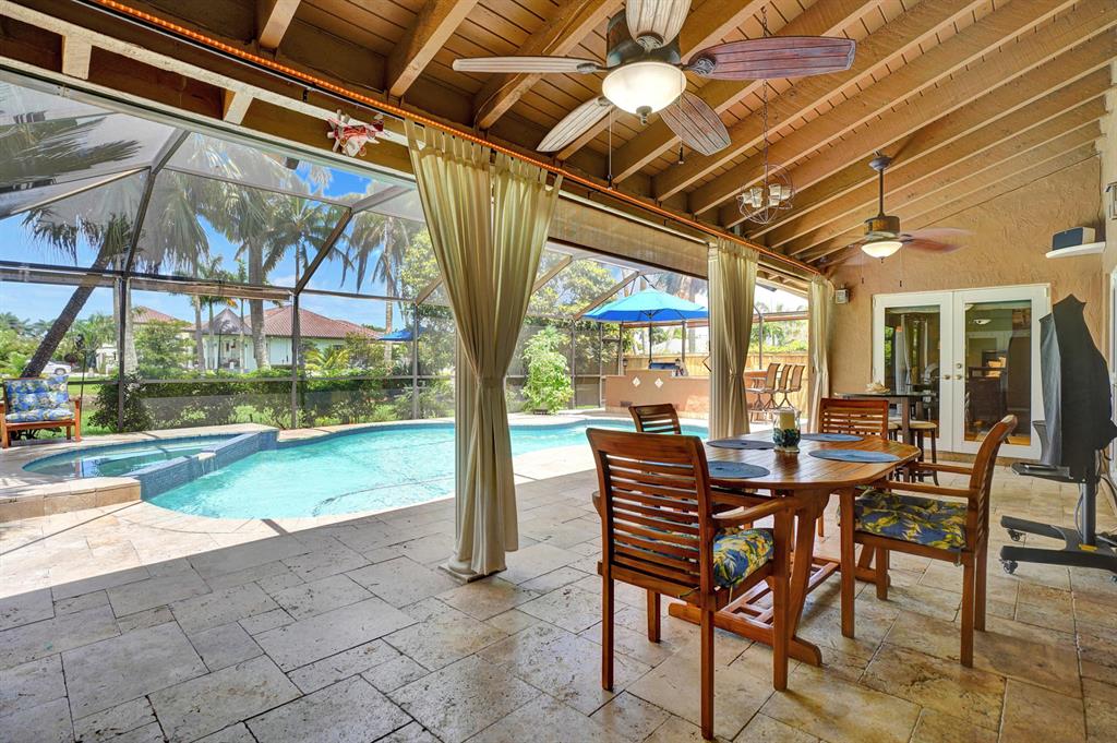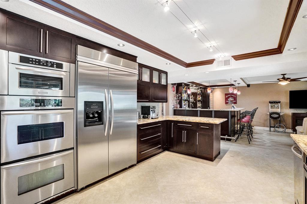 HAWKES BLUFF OF IVANHOE, Large Oxford Model, Two-Story Waterfront Totally Updated Screened-in Pool Home. This is a One-of-a-Kind Tropical Paradise! Great for Parties or Sitting Quietly watching a Beautiful Sunset. Large Backyard on canal adorned with Landscaping and Palm Trees. Every Room in this Home has been Upgraded. Starting with Custom Tile Flooring on Ground Floor; Screened-in Patio with Travertine Pavers and Heated Salt Pool & Jacuzzi, and Outdoor Summer Kitchen with granite countertop, Grill, and Refrigerator. Two, Fully Updated Master Suites. Master Suite on Ground Floor with its Own A/C and Impact French Doors that open up to Pool Area and Large Garden Master Bathroom has Huge Shower with Dual Shower heads, Rain-head and Body Sprays and Garden Tub, (see additional remarks)