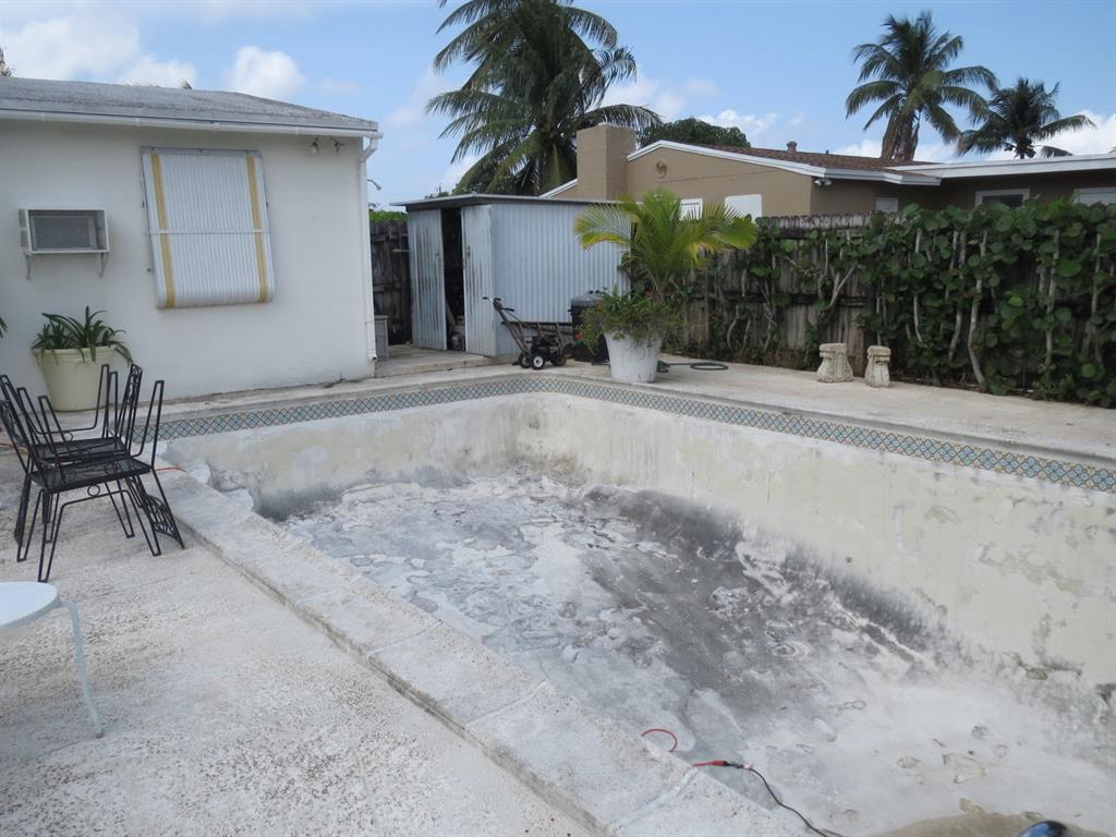 Extremely well maintained but not updated. This home is very unique. The back of the house has been turned into a mother-in-law suite with a murphy bed, kitchenette and bath. The front of the house has a large living room with a fireplace. The spacious kitchen has a breakfast bar and lots of cabinets. The master bedroom has sliders to the patio. The pool needs to be refinished and is currently empty. The shed remains with the property. Conveniently located close to shopping and restaurants.