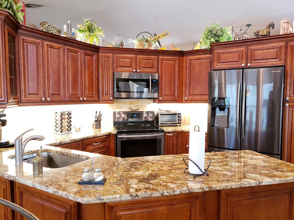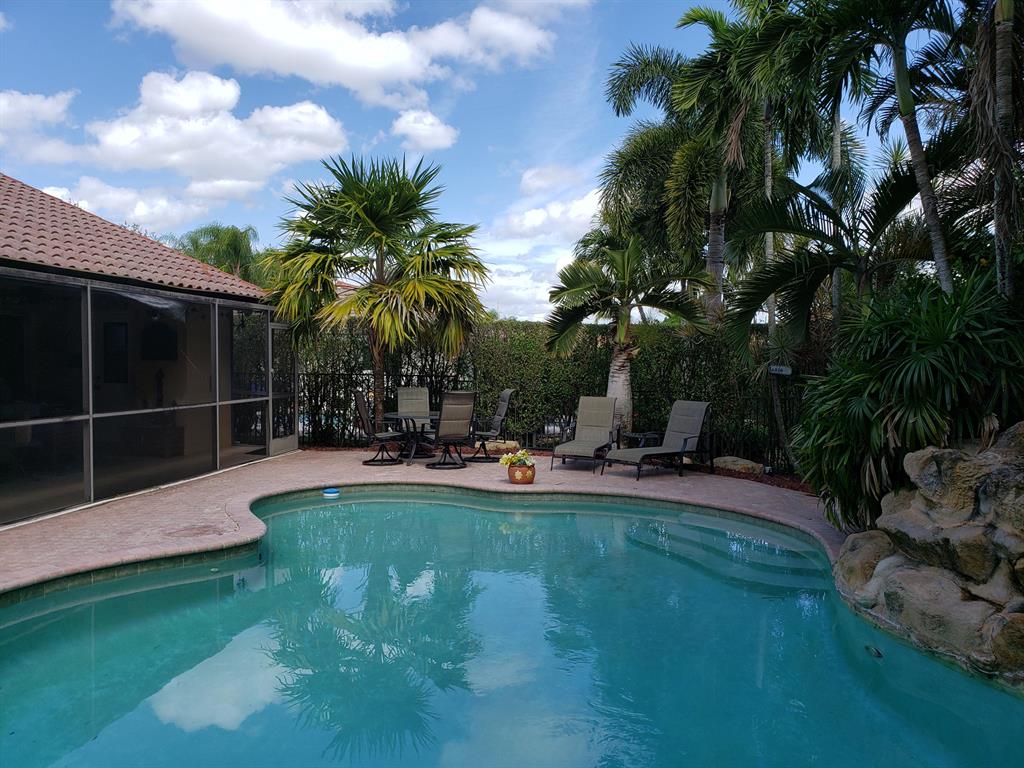 Come see this wonderful 4 bedroom / 2.5 bathroom home in the exclusive Sunset Springs Community in the heart of Weston. As you pull up to the residence you will notice how far this home sits back from the street giving an extended driveway with plenty of room for parking. Enter the home and you will notice the high ceilings and neutral tones. This great floor plan has the bedrooms on one side and the living area on the other. This home is truly perfect for entertaining! The kitchen has been updated with granite counters, wood cabinets, a beautiful stone back splash and black stainless steel appliances. Out back is your private retreat consisting of the screened patio entertainment area, the below ground pool and tropical landscaping that truly embodies South Florida living. Great location!