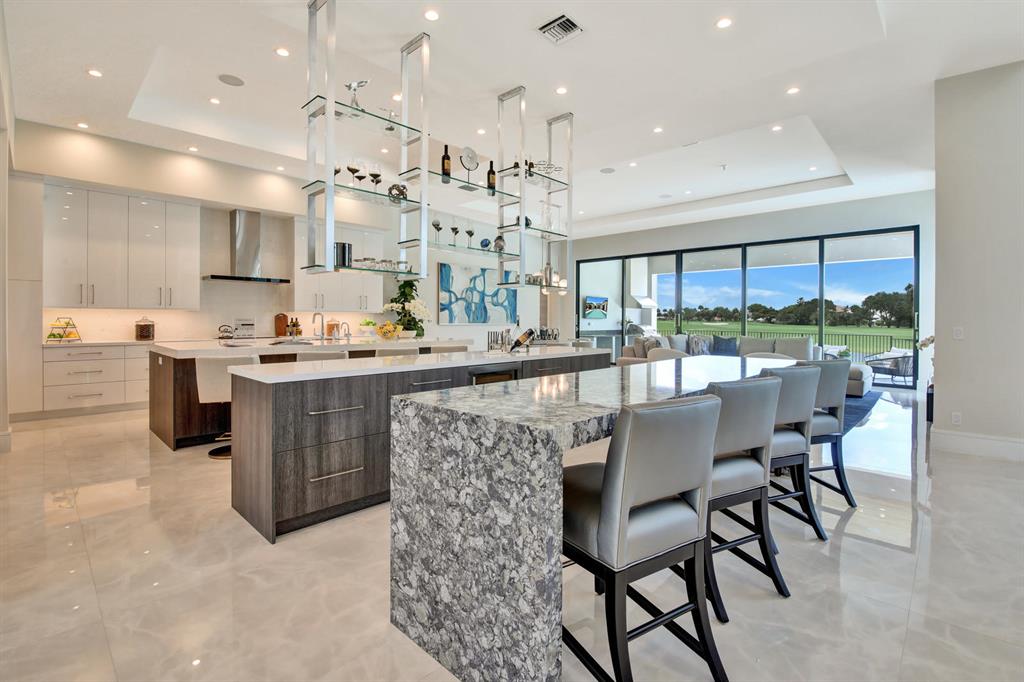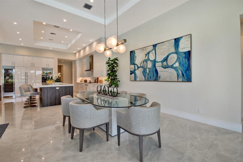 New construction single-story home with sweeping golf and lake views on a quiet cul-de-sac in Bocaire Country Club. This sophisticated, contemporary home by award-winning home builder Ellish Builders boasts 5,659 square feet of luxurious living space (7,401 total square feet). The bright, spacious home features soaring ceilings, 4 bedrooms, 5 full and 2 half baths, media room, gourmet Kitchen with custom Bar for entertaining, Subzero/Wolf appliances, gas cook top, private Club Room/Office, luxurious Master Suite with his and her baths and walk-in closets, tankless hot water heaters, Quartz countertops, 48 x 48'' porcelain tile and wood flooring, hurricane impact windows, heated pool with spa, and a 3-car garage with additional golf cart space.