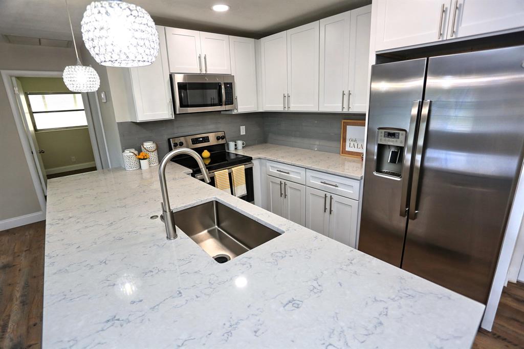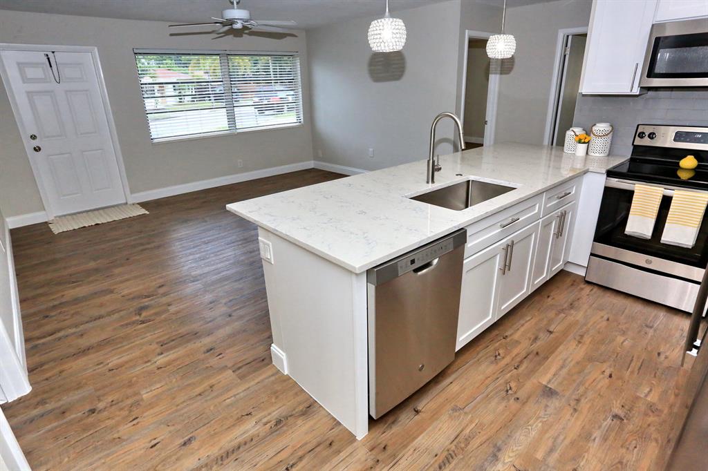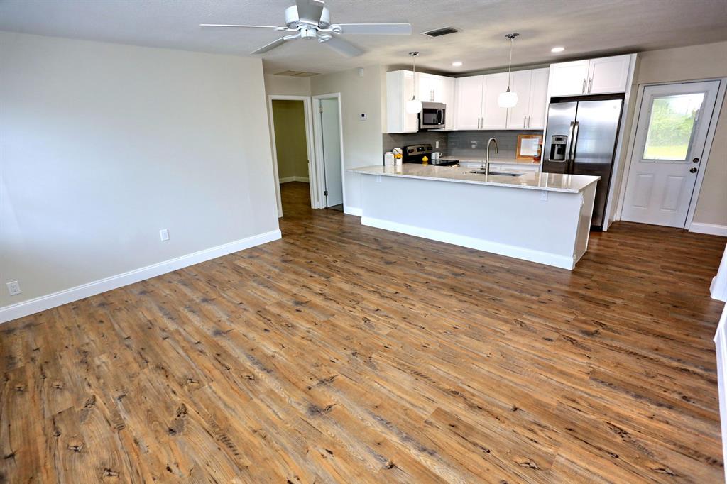 BEAUTIFULLY UPDATED 3 Bedroom - 2 Bathroom home with carport located in the heart of West Palm Beach. This home sits on THE BEST LOT IN THE IN THE NEIGHBORHOOD. The large pie shaped fenced in lot is directly adjacent to Dreher Park and just minutes from the Palm Beach Zoo. The home boasts updates such as ALL NEW KITCHEN, shaker cabinetry, stainless-steel appliances, and quartz counter-tops. Both full bathrooms have been elegantly updated as well. Luxury waterproof vinyl plank flooring and new baseboards throughout, designer tile flooring in the bathrooms. Fresh interior and exterior paint with knockdown ceiling texture. Screened in patio along with additional attached storage and a detached utility shed. Concrete circular driveway along with carport to handle your parking needs!