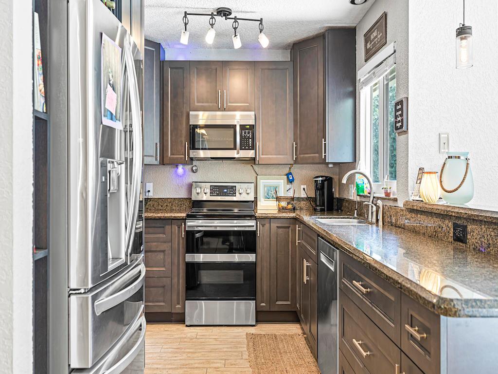 LOOKING FOR ROOM TO ENTERTAIN OR ROAM IN THE ACREAGE? SPACE FOR A GROWING FAMILY, ENDLESS TOYS OR HORSE WITH NO HOA? THIS NEWLY RENOVATED RANCH BOASTS 1.25 ACRES. UPON ARRIVAL YOU WILL BE GREETED BY A LARGE 8+ CAR DRIVEWAY, BEAUTIFUL LANDSCAPING, NEWLY PAINTED EXT, FENCED YARD, MULTIZONED SPRINKLER, NEW SHED W/ ELECTRIC/WATER & ADJACIENT CONCRETE PAD FOR AMPLE STORAGE. AS YOU TRAVEL INSIDE YOU WILL FALL IN LOVE WITH THE FARMHOUSE DESIGN INCLUDING WOOD PLANK TILE THROUGHOUT, AIRY GREY INT PAINT, NEWLY RENOVATED KITCHEN/ APPLIANCES/BATH & IMPACT WINDOWS. THE MOTHER IN LAW SUITE W/ KITCHENETTE OFFERS PRIVACY W/ EXT ACCESS. VENTURE OUTSIDE, IMAGINE RELAXING IN THE POOL ON THE COOL PAD, BBQ'ING ON RAISED DECK OR SWINGING IN THE GAZEBO READING A BOOK. CALL TODAY TO BOOK SHOWING! WONT LAST!
