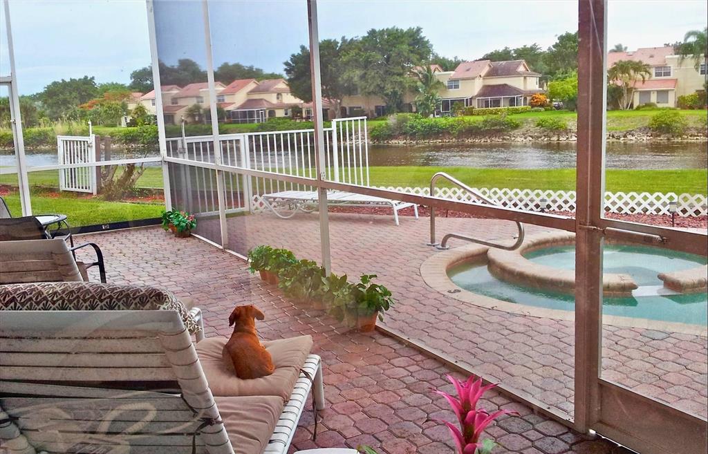Furn neg. 3/2 popular all-ages COSTA DEL SOL @BOCA POINTE. LARGE CORNER LOT. 4+driveway +2 garage. SUNSET WATER VIEWS, double glass doors to enclosed screen porch, open air fenced pool, open BBQ porch, outdoor shower, stairs to Canal & lake, +grass backyard for kids/dogs to play. Pets permitted w/restrictions. MBR en-suite, WI closet, double sinks, big shower, roman tub. Kitchen to entertain & SS appliances. Membership to Country Club w/Tennis, Golf, Gym OPTIONAL. HOA incl Cable, Gardener, Pest, Garbage PU, Gated Security, Heated Lap Pool. Exterior house painting due by HOA 2020. 15 min to beach, 5 min to 95 Dream commute. WALK to Waterfront Dining, Shops, and MORE. Property valuable EAST of Powerline, w/best schools. Perfect Year Round or Vacation Home.