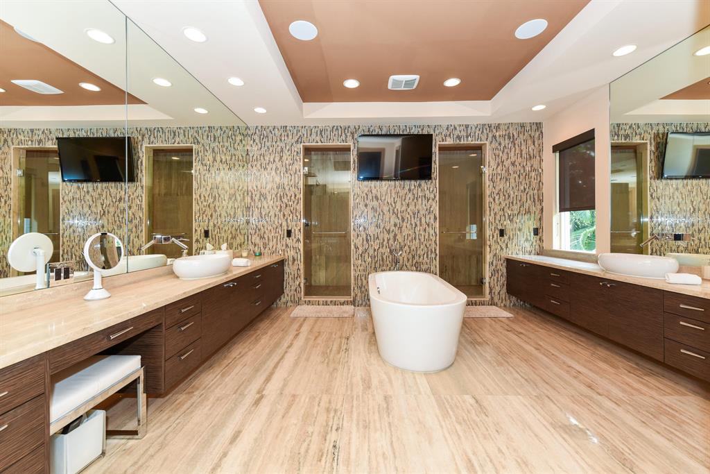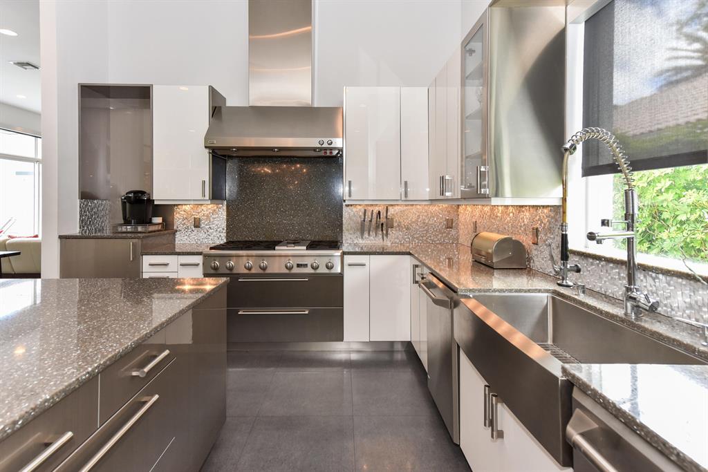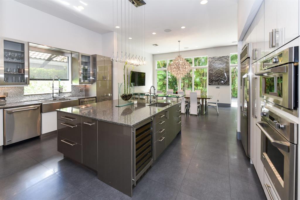WOW! WOW! WOW!Completely remodeled modern masterpiece with no expense spared! This property will truly make your jaw drop! This amazing home was torn down to the studs and completely redone giving you the piece of mind of a newer roof, plumbing, and electrical system. EVERYTHING in this home is custom designed! The MAIN HOUSE has 5 Bedrooms, 5 full &,2 half baths and State of the art gym by Busy Body Boca and Home officeAcross the stunning courtyard, separated by a beautiful pool, sits a free standing guest house with a generous size bedroom and bathroom. This home is perfect for entertaining with ONE OF A KIND bar /hangout room opening up to the courtyard/pool offering the perfect indoor, outdoor ambiance. The spectacular outrageous bar is finished with Ruby Red Patina Vetraz