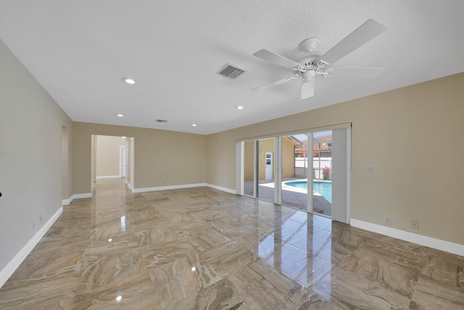 A rare find! two story-home with 3 bedrooms + den (can be fourth bedroom) and 3 full baths, with lots of features and upgrades. Brand new roof a couple weeks old. Marble floors throughout, remodeled chef's kitchen, hurricane windows and doors, les than a year old. Two A/Cs 2019 and 2017. All bathrooms remodeled, screened pool recently diamond brighted. New ''pizza oven'' outdoors. Bonus loft. Fourth bedroom currently used as a den. Both floors are CBS. See extensive virtual tour.