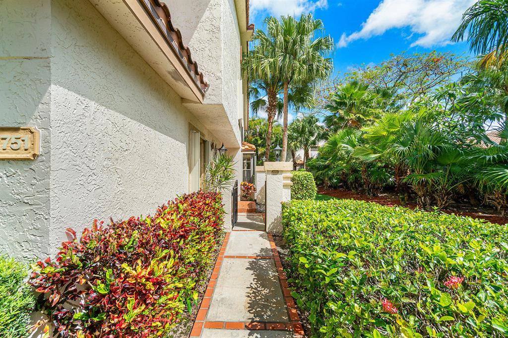 Beautiful updated two story townhouse perfectly situated on tranquil & private corner lot. Light & bright open floorplan offers sunny Florida room with partial lake views perfect for family room or home office. Charming brick paver patio surrounding by mature landscaping. Gorgeous updated granite kitchen with newer SS appliances, wood cabinets & breakfast nook. Updated lighting & ceiling fans. 24'' porcelain tile on first floor, 6'' baseboards & high end laminate on staircase and second floor. Spacious master bedroom offers vaulted ceilings, updated granite vanity, soaking tub & separate shower. AC 2017. HW heater 2019. Accordion shutters/partial impact glass. Private 2CG with extra storage rack. Heated community pool. Pet friendly! Boca Pointe CC has optional membership but NOT required.