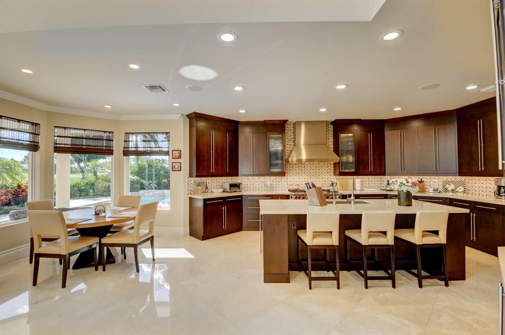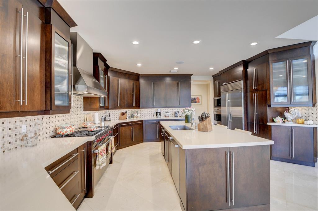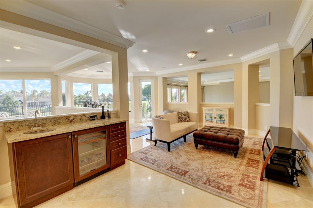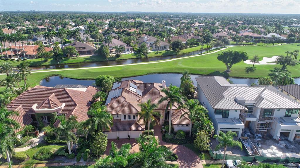 Totally renovated (down to studs) & expanded like new! This home has every extra & superb southern lake & golf views. Elevator, hurricane impact glass, theater, generator, Crestron smart system, LED lighting, Platinum Mosquito Protection, SOLAR panels for energy efficiency, & more. 1st floor master suite with his & her baths & large custom closets. Euro-style kitchen with quartz counters, Wolf gas range, convection oven, Sub-Zero refrigerator, Bosch dishwasher, and wine fridge. Loft with theater, exercise area & huge terrace. 2 laundry rooms. All guest bedrooms are en-suite. Southern exposure for resort-style pool, patios, terrace, outdoor kitchen, and prime lake & golf views.