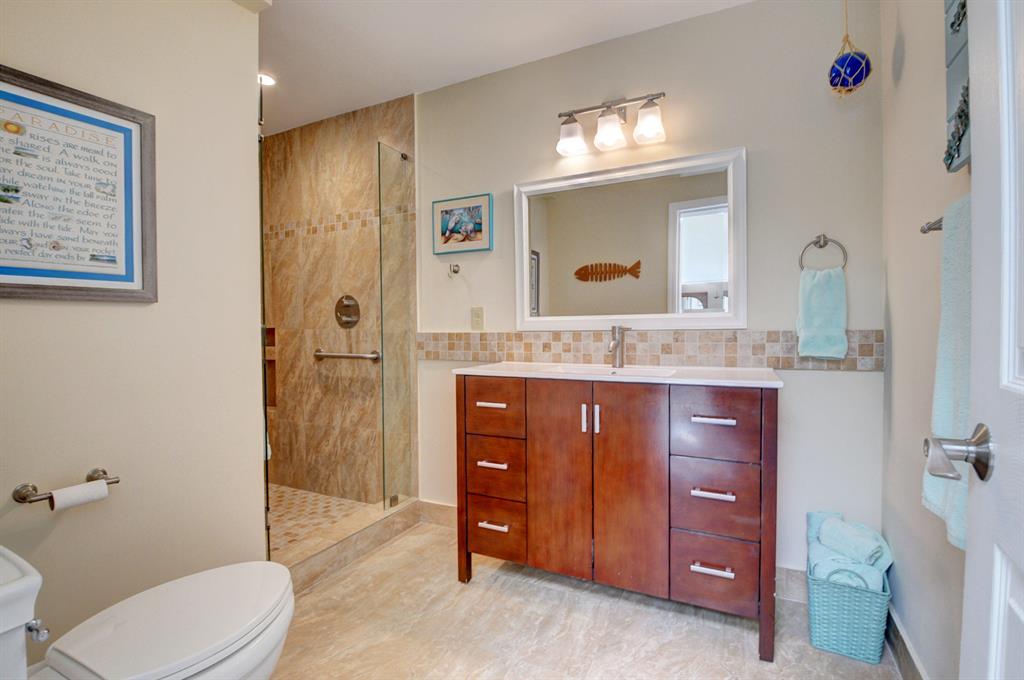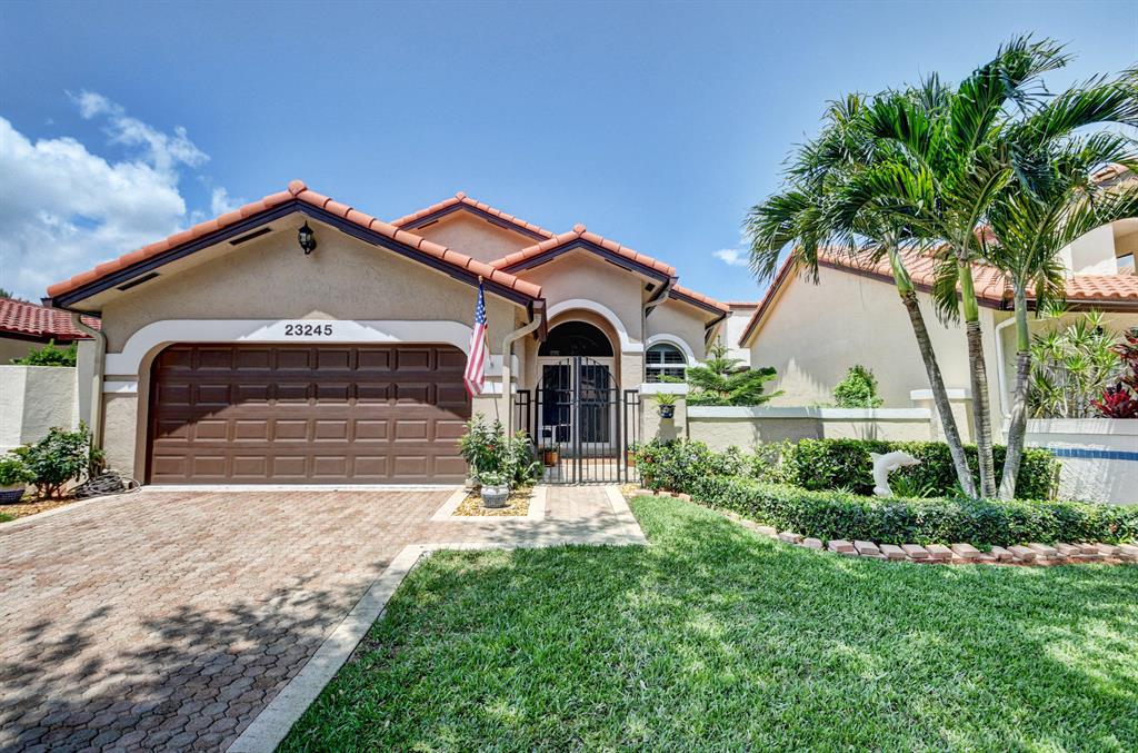 Custom designed 3 bedroom, 3 full baths, 2 car garage Home, located across the street from the community pool. Dramatic entrance w/soaring 2 story vaulted ceilings. Enjoy the sense of openness, volume, & space with this light and bright home with its open floor plan. Enter into foyer which leads to family room. Beautiful stone tile flooring downstairs and a engineered hardwood flooring on the staircase and upstairs. Kitchen includes granite top counter, 4 years old stainless steel LG appliances, easy closing cabinets and stone tile flooring, step down to sunny dining area and through sliding doors to the magnificent 11 foot ceiling and paver floor screened patio which makes a beautiful extra