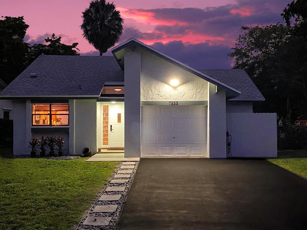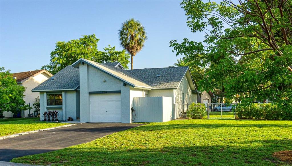 Welcome home to this tastefully updated, immaculate 3/2, situated on a large corner, interior lot in a popular Coral Springs neighborhood! This bright and open floor plan features soaring vaulted ceilings with a spacious great room concept. The kitchen features an extra wide pass thru to the dining room (bar stool seating), stainless steel appliances, glass cooktop stove, and a reverse osmosis water system! Beautiful hardwood wide plank flooring in all three bedrooms. The hall/guest bath has been completely remodeled with new tile, tub, shower, toilet, & vanity. The house interior, exterior and driveway have been recently painted with neutral grey-white palate. The property includes keyless front door entry, a screened patio that overlooks an extra-large fenced