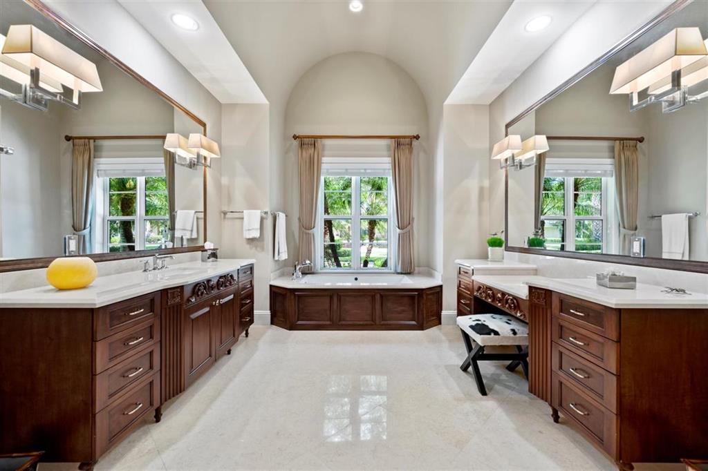 With attention to detail and quality, this beautiful Breakers West golf course home will please the most discerning buyer. Built in 2009, this home offers 5 BEDROOMS, OFFICE, EXERCISE ROOM (or possible 6th bedroom), 5.5 BATHS ALL ON MAIN LEVEL-- INCLUDING GUEST/IN-LAW SUITE (1 BEDROOM, LIVING ROOM, KITCHENETTE, 1.5 BATHS) ON 2ND FLOOR. This professionally designed home features many desirable amenities both inside and out--marble floors, chef's kitchen with gas cooking, cappuccino maker, wine storage room; covered loggia with built-in BBQ overlooking the Breakers Rees Jones Golf course. This home is also hurricane ready with complete impact windows/doors and whole house generator with 1,000 gallon propane tank. The Master Suite is designed for today's busy lifestyle with separate His
