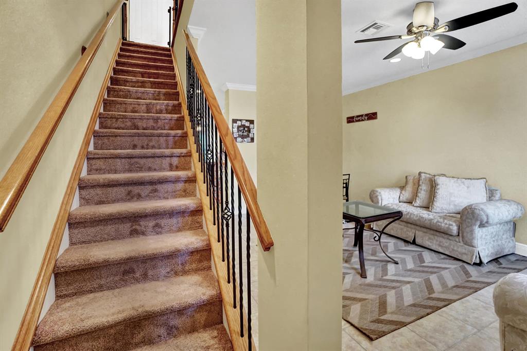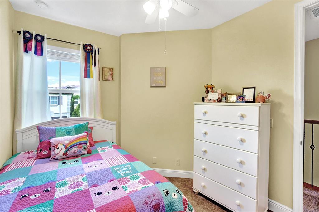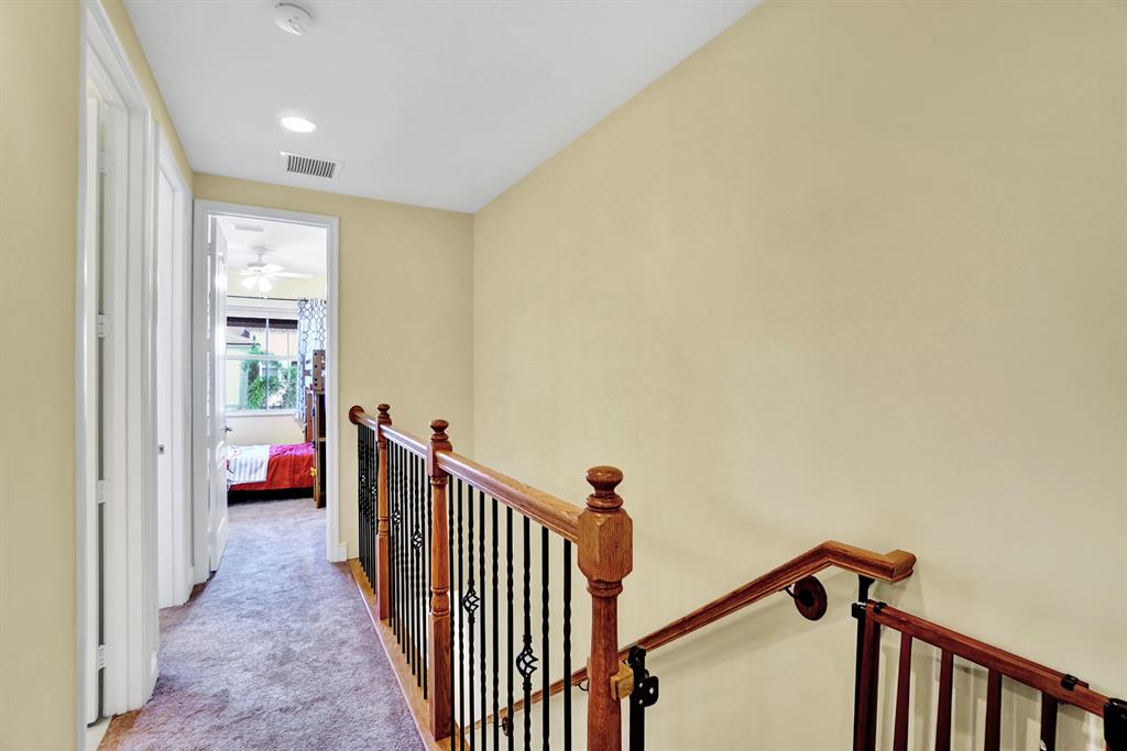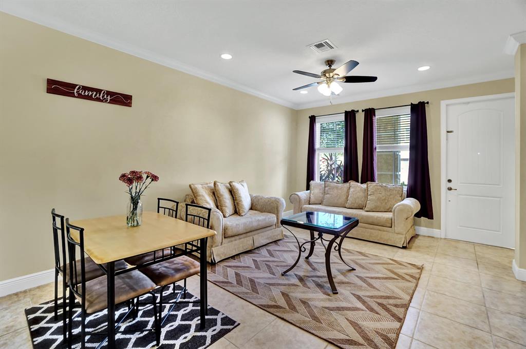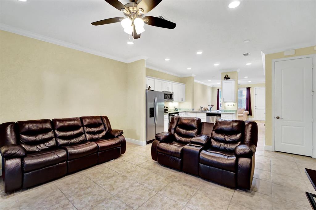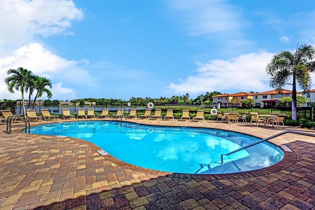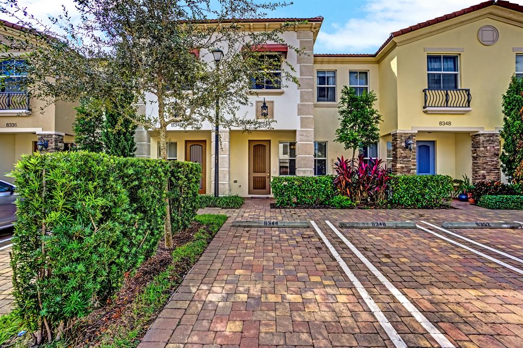 This ready to move in 3 bedrm, 2 & half bath, townhouse w/ impact windows, in the gated Oakton Preserve neighborhood, centrally located in WPB. Has open kitchen w/ granite counter, back splash, stainless steel appliances & pantry. Living areas have crown molding, under stairs storage & is tiled while stairs & bedrms have neutral color carpet. Master overlooks preserve area & has two closets while the secondary bedrooms each offer walk in closet. Laundry upstairs for convenience. Pavered patio area looks to small preserve area. Two assigned parking spaces, gated community has only 110 units; HOA fee includes Club House with pool overlooking the lake, bbq area, recreational room with kitchen, play room with billiards and ping pong and a fitness center, insurance, water, & mor