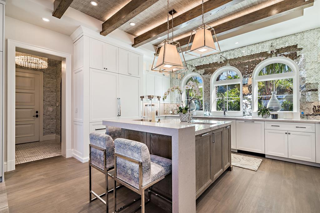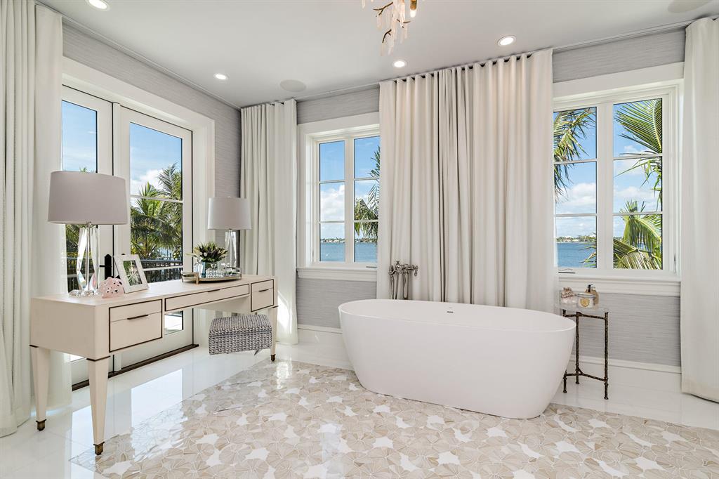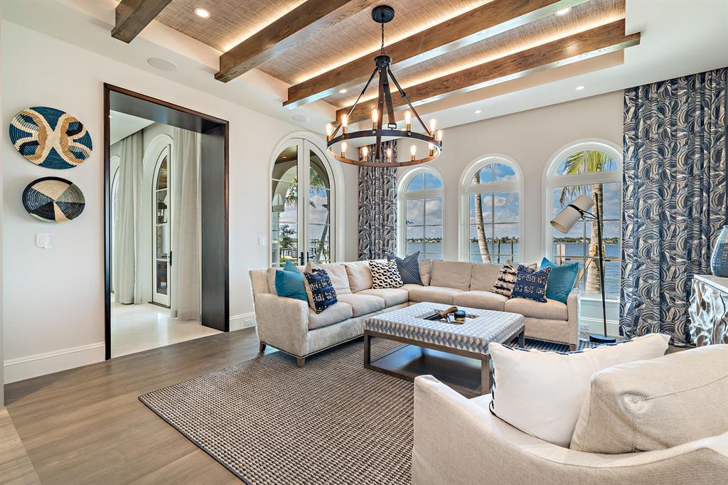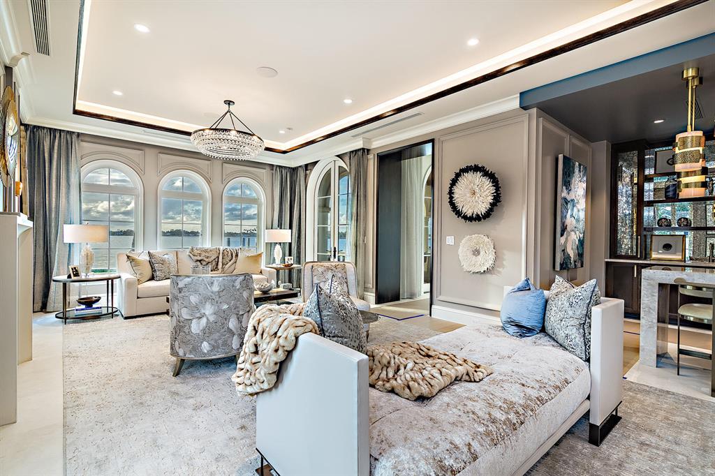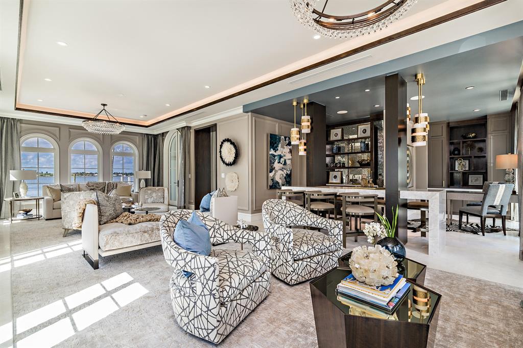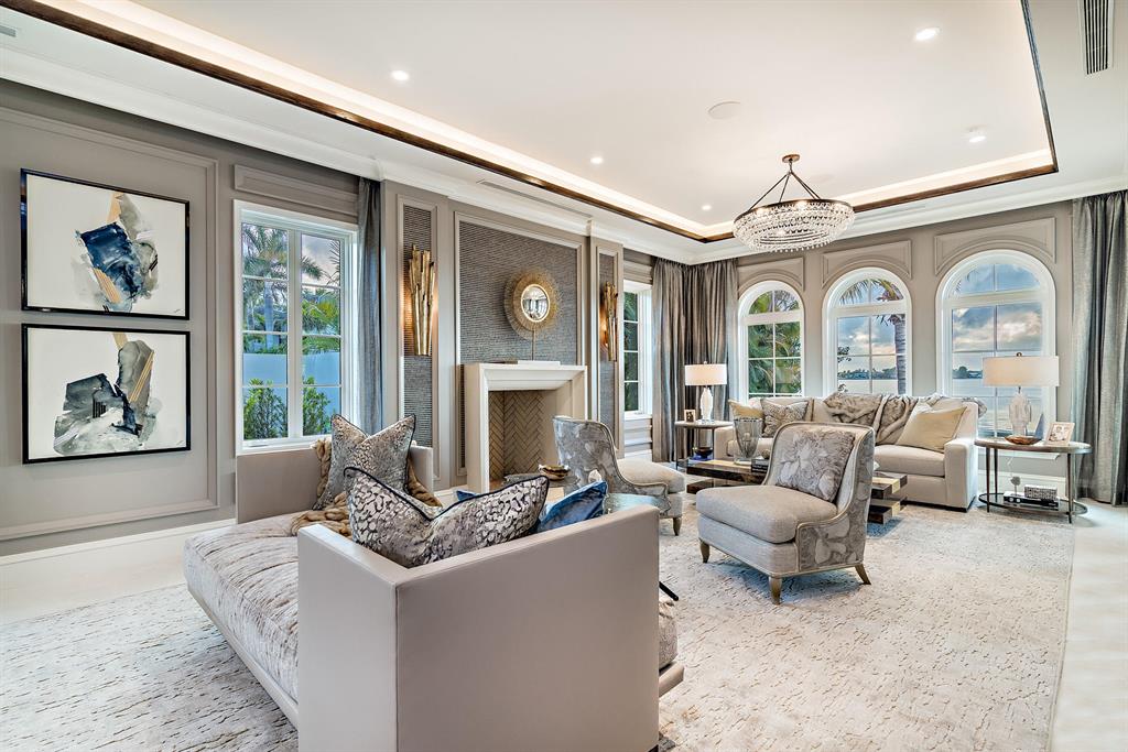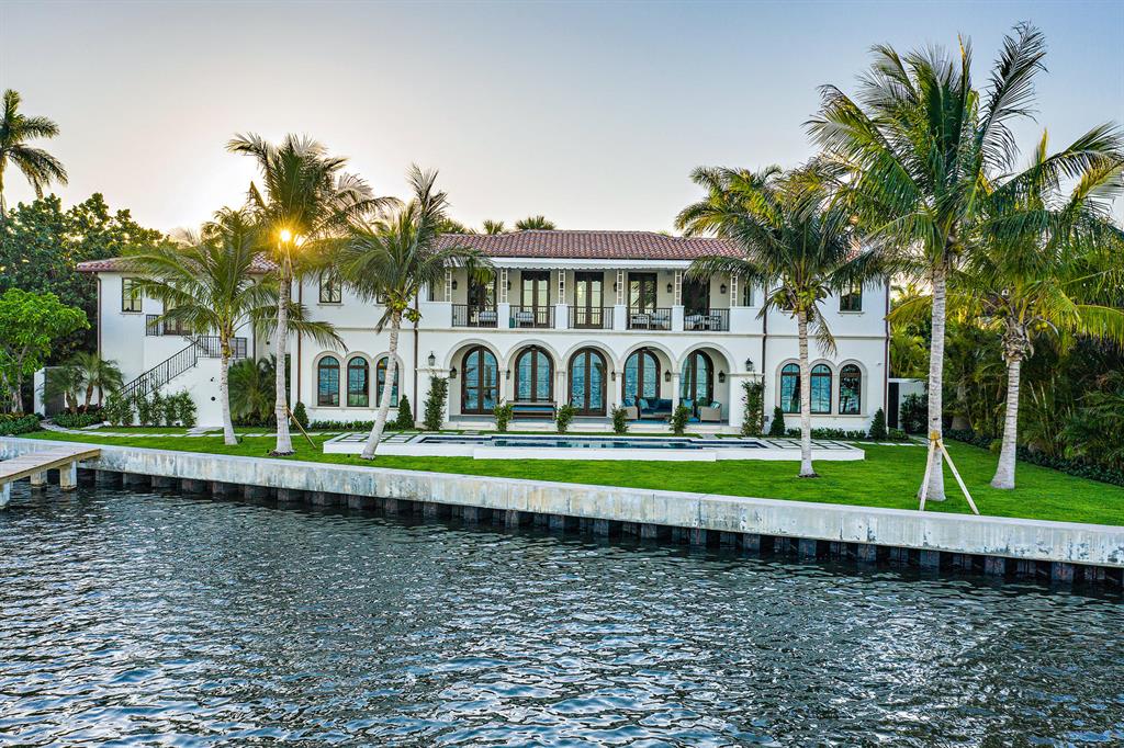 Brand new, fully furnished Estate Section Lakefront on the direct Intracoastal. Designer furnished with unprecedented attention to detail that highlights this spectacular waterfront location. Designed for quiet & private enjoyment, the home boasts interiors by noted decorator Marc-Michaels, constructed by Alonso & Assoc. Magnificent sunsets and water views are enjoyed from virtually every room & from every vantage point. Over 155 ft. of water frontage with a new dock. Amenities include: glass wine cellar, fireplace, elevator, 2nd level covered balcony, outdoor shower, 2 laundry centers, 5 AC zones, security system, full house generator, hurricane impact throughout, 2-car AC garage w/guest suite above with separate entrance, 40 ft. pool with sun-shelf and spa.
