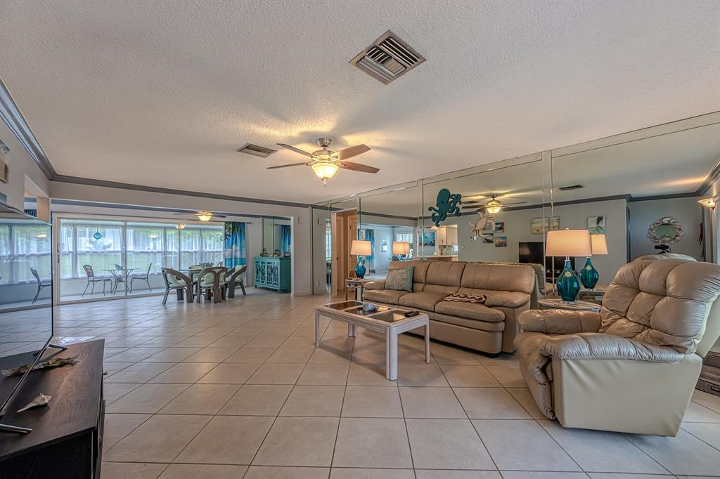 Enter this home & the ''wow factor'' of a spacious floor plan combined with naturnal light explodes! Beautifully updated 2/2 home with a stunning floor plan features 18 x 18 tile on the diagnal with with crown molding ceilings. Snuggled between the kitchen and garage is a laundry room/pantry under air. You'll love the light and bright kitchen with white cabinets, newer appliances and tons of storage. Both bathrooms feature stunning file and custom walk in showers. *NO LAND LEASE*Low HOA fee of $219/month covers golf for residents, all water bills, 2 Clubhouses, 2 heated pools, sauna and shuffle board. Fee also covers pressure washing/painting roofs every 2 yrs and home exteriors every 4 yrs. A fantastic place to live for a season or year round.! This 55+ community allows pets!