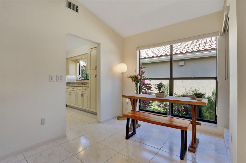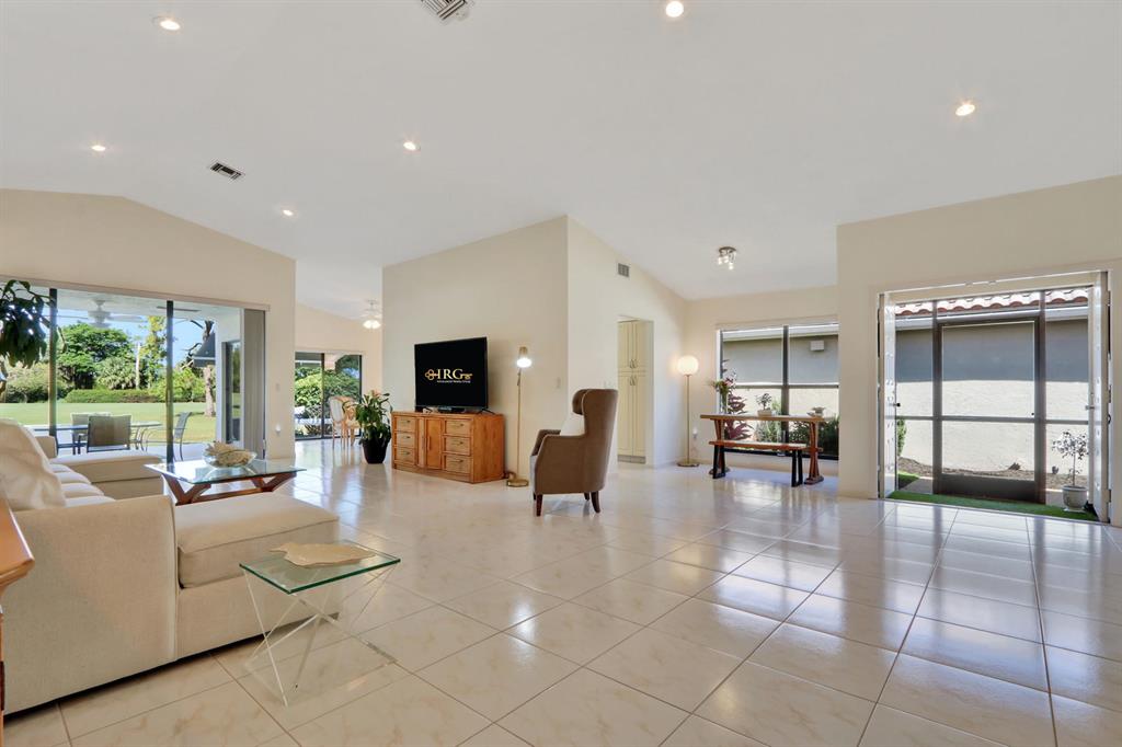 Welcome home to this move in ready single family residence in Boca Woods Country Club. This 3 bedroom, 2 bathroom house is situated on a stunning golf course and lake lot with no rear neighbors. You will enjoy vaulted ceilings and neutral tile through out the living areas, a nicely updated kitchen with granite counter tops and stainless steel appliances and an exceptional outdoor living area. Boca Woods offers two 18 hole golf courses, driving range, putting green, 8 har tru tennis courts, fitness center, pool, bar, casual dining and fine dining. Mandatory golf membership of $65,000 is required. Golf cart is included in sale!
