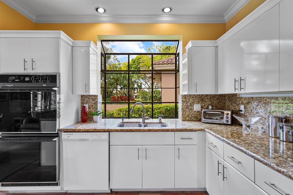 Your own private oasis, this 4 bed/4 bath home is tucked away on a cul-de-sac in the coveted Broken Sound Club. With almost 3500 sf of smart living space, this open, airy layout features a generous living area punctuated by a wide living room with gleaming, sunlit floors. In addition to this ''center of it all'' vibe, you'll find 3 spacious bedrooms with en-suite baths, situated for maximum privacy in separate corners of this one-level home. An additional den/bedroom plus full bath could serve as an ideal work space. The entire living room, kitchen and master bedroom boast gorgeous views of the golf course, with a distant view of the lake. On a steamy summer day, relax by your private pool, on this lush and impeccably landscaped property. All your family needs are within close proximity.