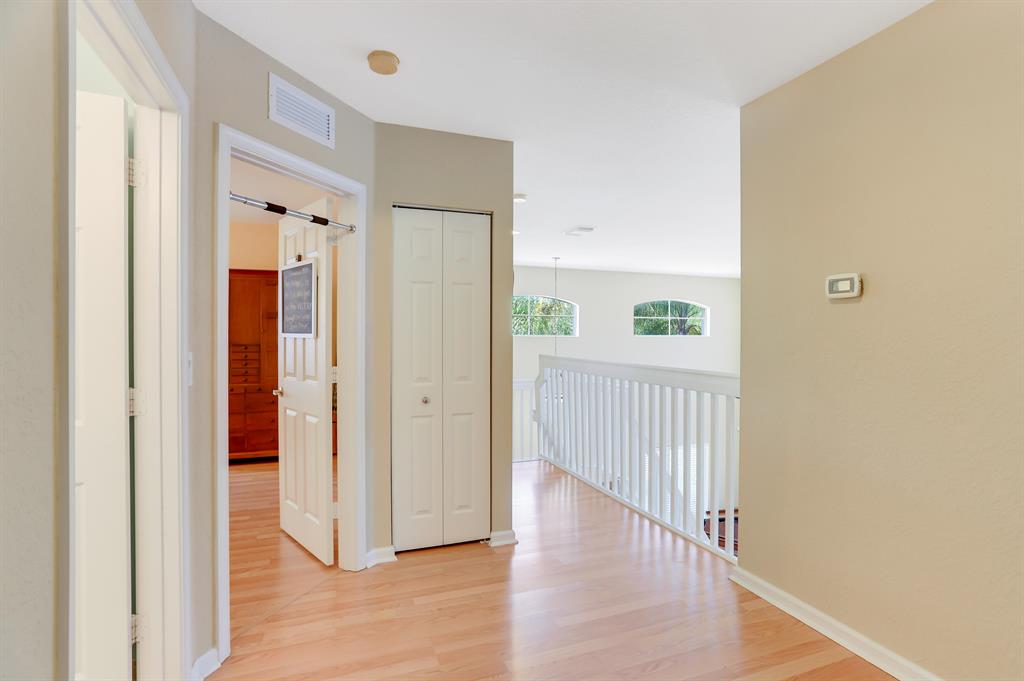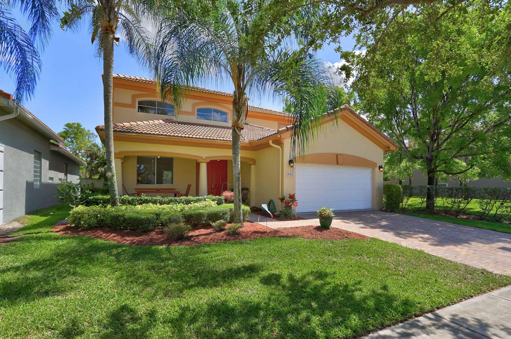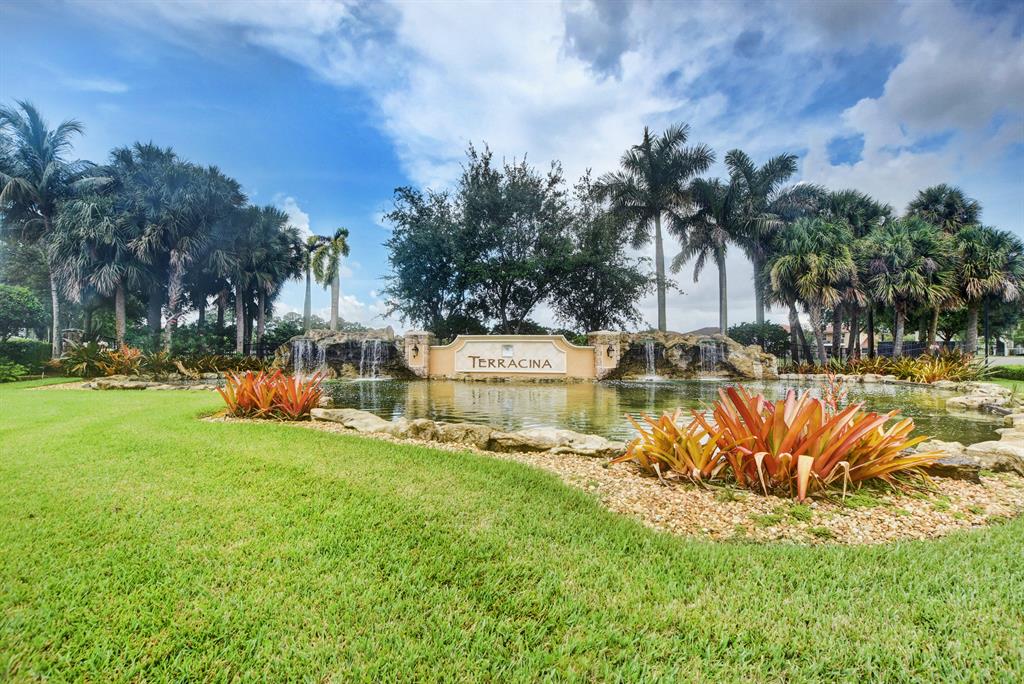 Pride of ownership shines in this home. MASTER BDRM DOWNSTAIRS. 4 spacious bedrooms upstairs. Privacy abounds with a vacant green-space on the west-side & no neighbors in the back. Inside we have a beautifully open layout with cathedral ceilings, tile downstairs, laminate upstairs. Everything is clean & lovingly maintained. Lots of natural light. Terracina is man-gated, HOA fees include front & back lawn care. Amenities include fully stocked gym, resort pool party pavilion, tennis, basketball, 3 tot lots, covered picnic areas and lush landscaping. Terracina is centrally located, only 15 minutes, to PBI Airport, Downtown West Palm, City Place, the 300 acre Okeeheelee Park, Wellington Mall & 441 corridor, the Turnpike and I95. This home is a pleasure to be in. Call anytime.