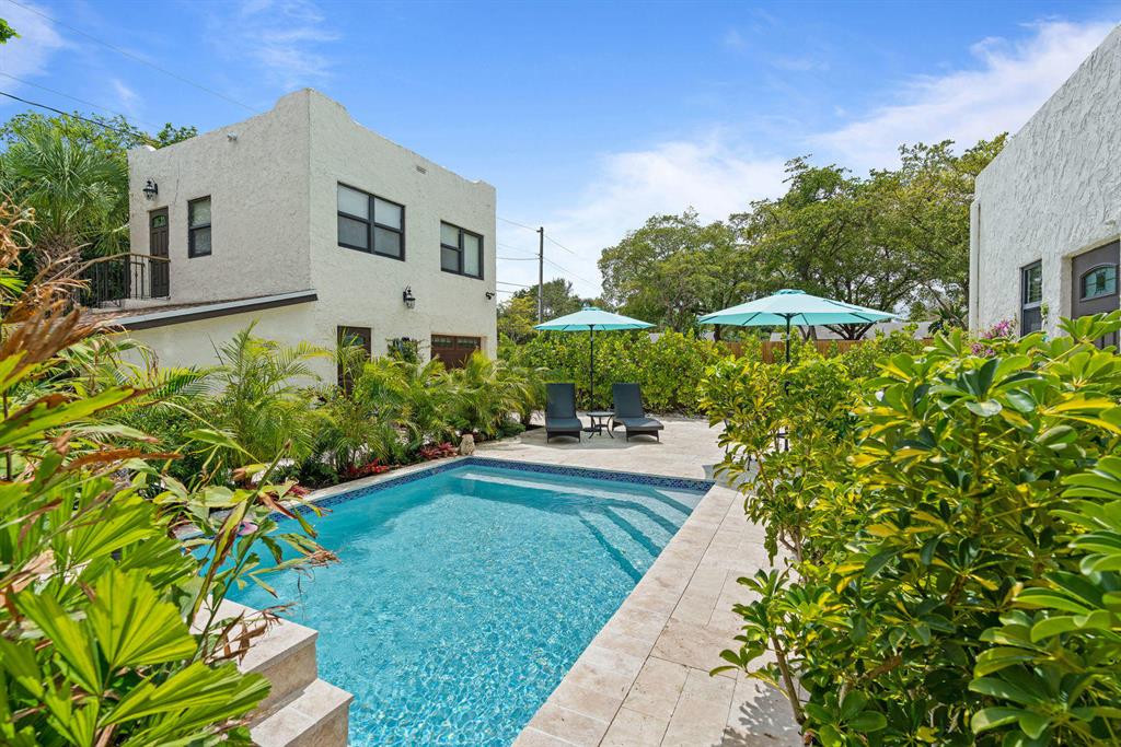Beautifully restored, and completely renovated historic main house, plus 2 apartments in Old Northwood. The main house enters through a wonderful front porch with decorative iron work, marble floors, lives like another room. The main house is 3 bedrooms, 2 1/2 baths, and den. Stunning with high ceilings, LED lighting, new wood flooring, fireplace, large formal living, and dining rooms. A chefs kitchen with all Viking Professional appliances, simply turn-key gorgeous. New pool with spa jets and bench, the pool deck is travertine marble, fenced and landscaped, private walkways and entrance to the guest house. A 1/1/ apt. on the 1st floor, 1/1 mother-in-law on the 2nd floor, and 1 car garage. This property is like a new home, all new electric, roof, stucco, AC's, plumbing. All Impact Glass!