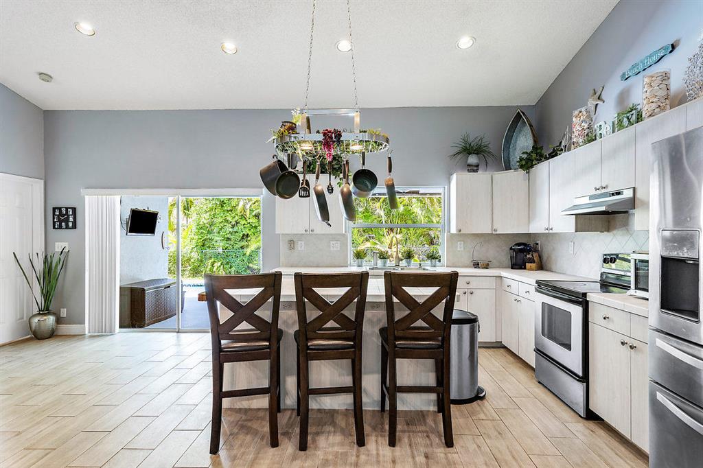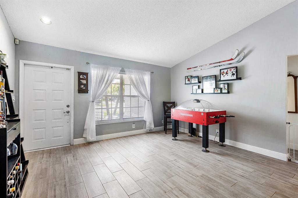 This gorgeous home features southern farmhouse charm with tons of curb appeal. Open and bright it features a modern open concept floor plan with a fully upgraded eat-in kitchen and spacious great room. Master suite is ENORMOUS with a beautiful large bath. Split floor plan offers two large bedrooms with ample closets and bathroom. Outdoor oasis with a lush private tropical patio, sitting area, sparkling pool, and BBQ area! Everyday is a vacation in this backyard. Established neighborhood with LOW HOA Excellent school, close to major highways, shopping and parks. Exceptionally maintained home in move in condition!