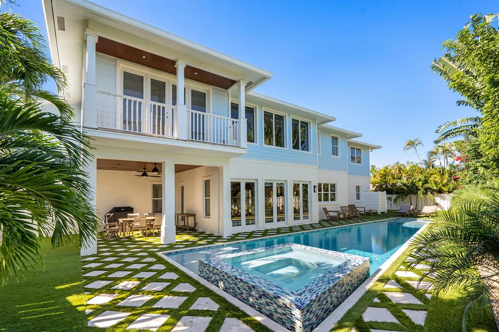 WOW! Key West meets Coastal Contemporary with this stunning single family home perfectly nestled between the Intracoastal Waterway and Atlantic Ocean. Volume ceilings, tons of natural light & functional layout sprawling across 3,300 living sqft. 4 ensuite - generously sized bedrooms, 3.5 baths, ultra-sized loft & downstairs office - makes a perfect landscape for your next dream home. SPECTACULAR backyard -- impeccably designed and ready for its new and proud owner. 50 foot brand new modern pool equipped with a stylish spa! Your modern astroturf and tile pool deck is clean, creative & carefree. Sit out back with your beautiful Ocean breeze offered by the backyard's desirable Eastern exposure. Lush landscaping, overhang for dining al fresco with a pecky cypress exposed wood