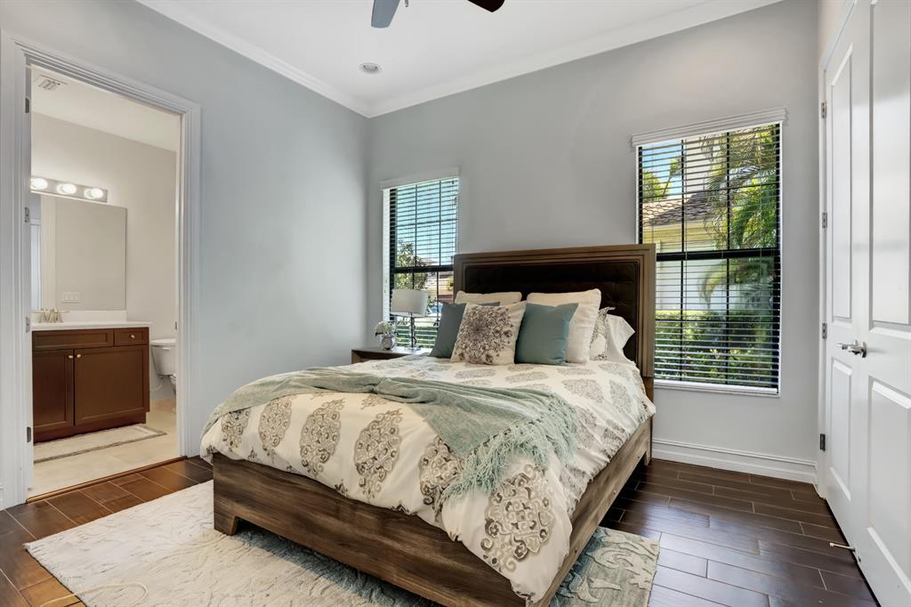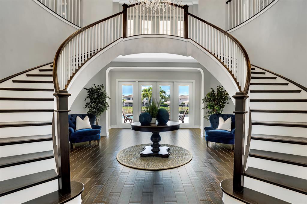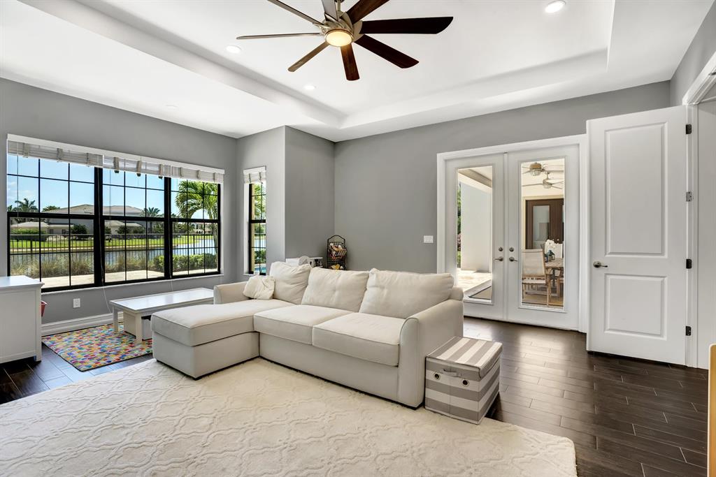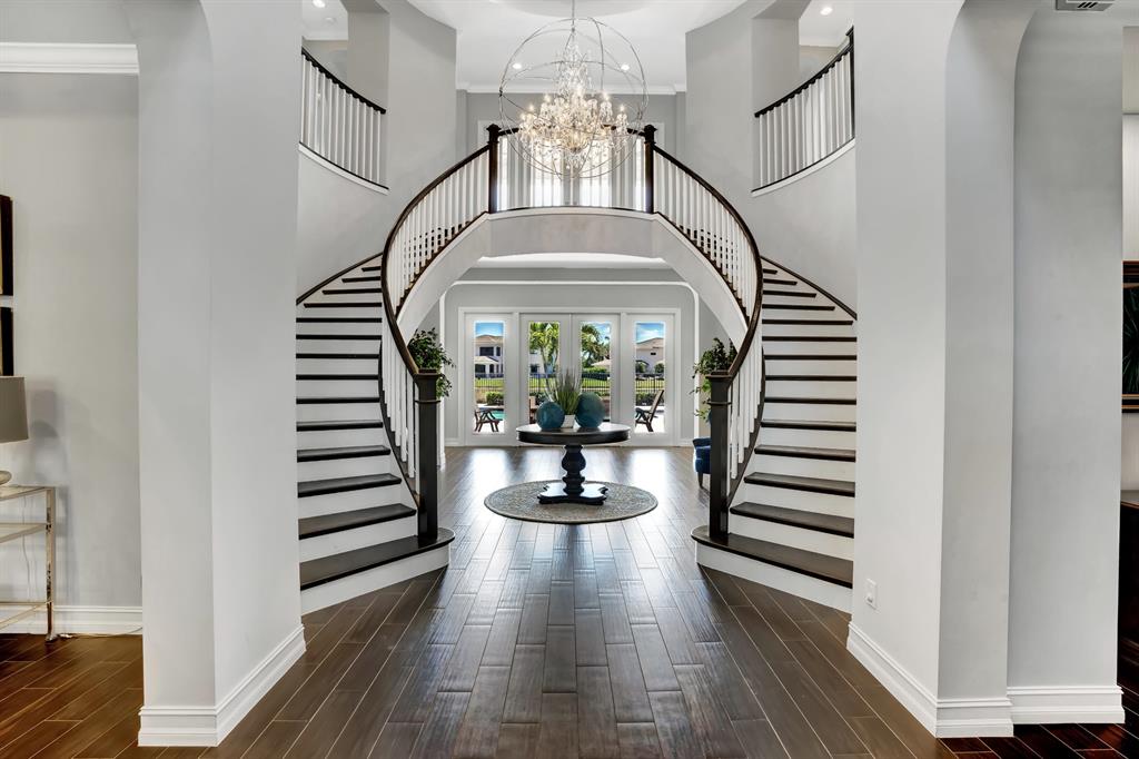 Luxury at its finest. This immaculate 2015 home has over 5600 of living square feet and is filled with upgrades and custom features including a whole house generator and a large circular driveway. This is one of the best lots in The Oaks on 0.42 acre with a large side yard, sleek saltwater pool and spa and stunning lake views. As you enter the home a double staircase takes you to the master suite and 3 additional bedrooms with an extra room that could be used as an office or craft area. Downstairs has an elegant open concept kitchen with bright floor to ceiling windows that enhances the architectural features and design of this home. There is an office and guest suite on the main floor in addition to a large recreational room that could be used as a movie theater or play area.