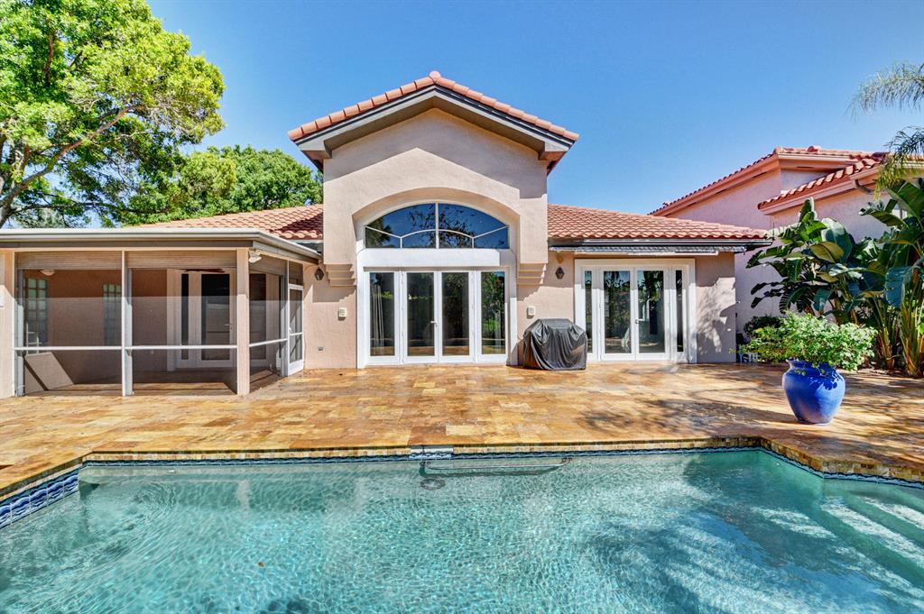 This incredible 3 bedroom 3 bath Ventura model in Santa Barbara is on a prime lakefront corner lot and features many appointments and upgrades. Including a new roof (2016), Impact windows, freshly painted interior, marble flooring, granite countertops in the gourmet kitchen, retractable awning, and marble pavers surrounding the pool. Spacious Master bedroom and Master bath, featuring dual sinks, granite countertops, frameless shower and roman tub. Enjoy sunsets over the lake from your screened Lanai. 2 car tiled garage with outfitted storage. Santa Barbara is a centrally located gated community that features a stunning clubhouse with a fitness center, library, card, media and billiard rooms, entertainment ballroom, full kitchen, picturesque pool, and tennis complex.