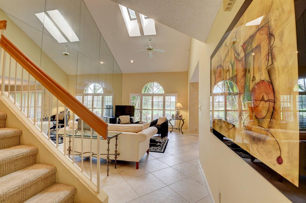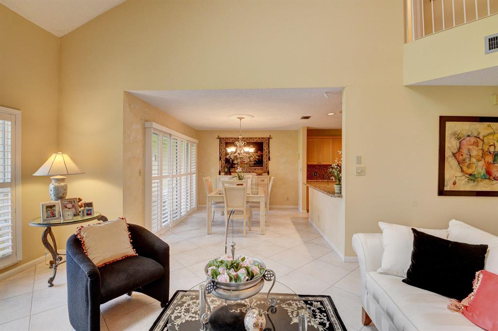 Enjoy sweeping golf course views from this beautiful 3 bedroom 2.5 bath Townhouse located in The Greens of Boca Country Club. Updates include stone floors in the main living area, stainless steel appliances, granite counter-tops in the Kitchen, and plantation shutters. The sunny and bright Living room has vaulted ceilings. 3 bedrooms upstairs including a Master Bedroom with vaulted ceilings, a balcony, and a large master bathroom. Enjoy beautiful sunrises over the golf course from your screened lanai. This home is located conveniently within walking distance to the community pool. Golf and tennis membership packages are available but not mandatory. Don't miss this great opportunity to live in a fabulous country club community!
