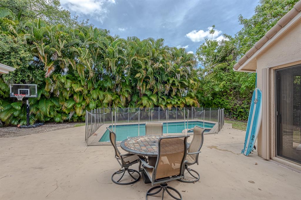 Spectacular 3 bedroom, 3 full bathroom corner lot pool home. Located in the prestigious community of Encantada-Boca Pointe. Wow!! Large circular driveway in front of house plus 2 car garage on the side. This move-in ready home offers a modern kitchen w/ white cabinets, granite countertops, and island that opens up to the family room. Newer kitchen appliances. Newer A/C, newer water heater, and pool heater. Tile throughout the house. Modern wood type flooring in bedrooms. Built in closets. Open floor plan with lots of natural sunlight. Neutral white color throughout the house. Corner view of lake from the master bedroom. Automated AC, garage, Jacuzzi, Pool, and alarm from phone apps. Enjoy your private tropical backyard, heated pool and Jacuzzi. Screened patio. Home generator.