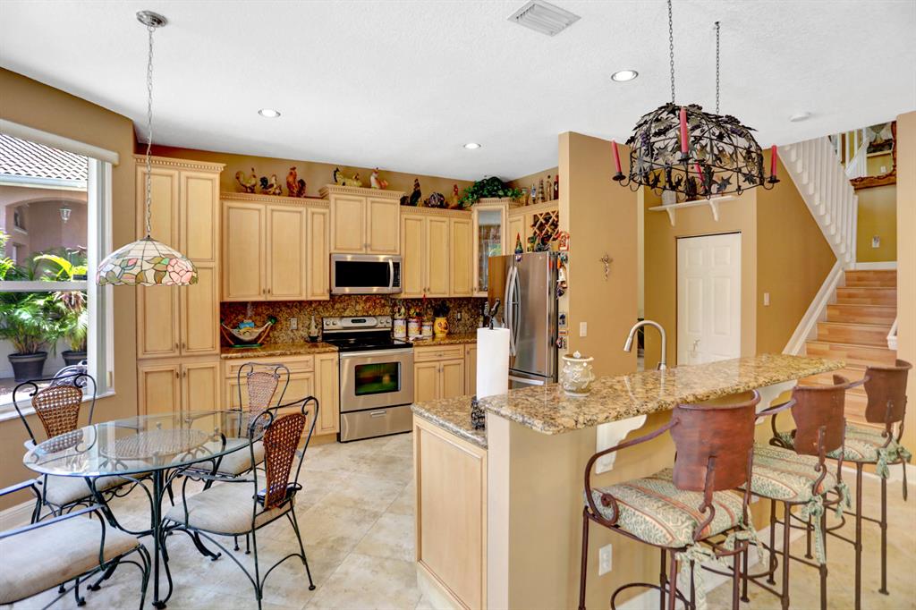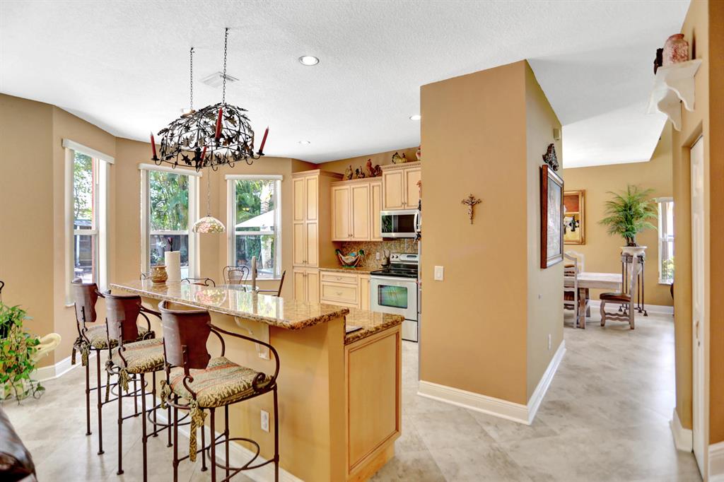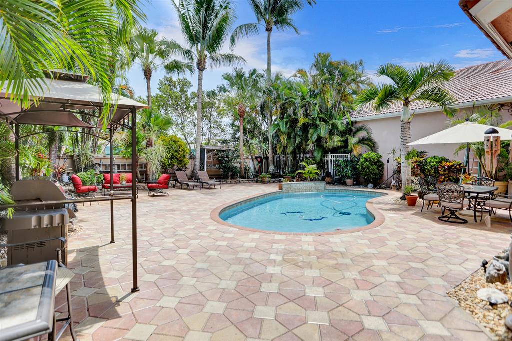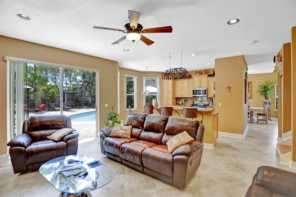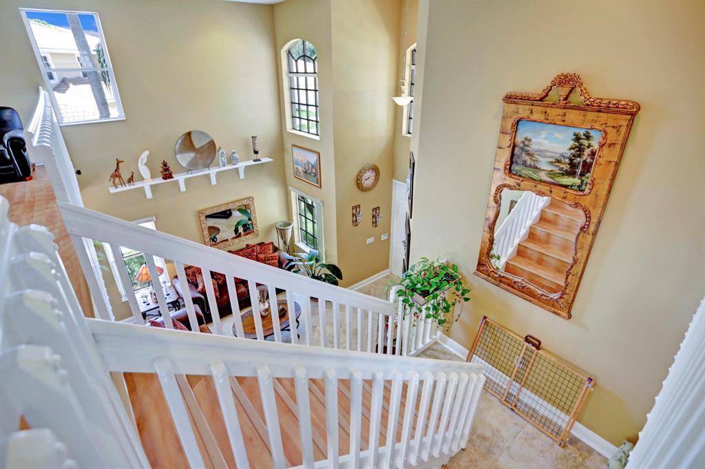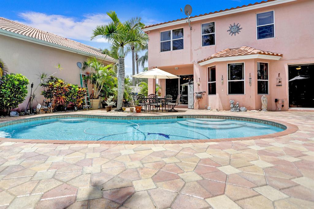 Walk into this 3 bedroom plus loft and 2 1/2 bathroom home and you will immediately notice the high ceilings in the living room and the views through the dining room to the expansive pavered patio with salt water pool. The updated kitchen with new appliances, sink and granite counters is perfect for the culinary lover. The family room, powder bathroom and laundry room complete the downstairs. Upstairs you will be greeted by the master bedroom together with a large closet with built-in cabinets and an updated master bathroom with a separate shower and tub. The additional 2 bedrooms share a full bathroom and the grand loft area can be used as an office or entertainment area. It can also be closed off and made into another bedroom. Some additional features/upgrades of this home include