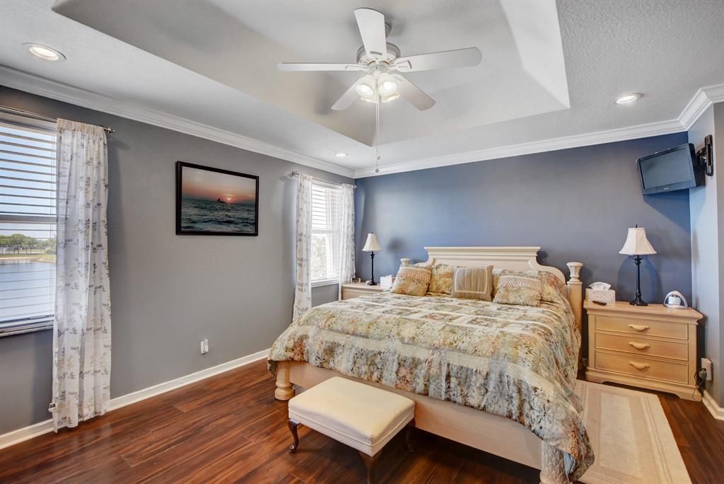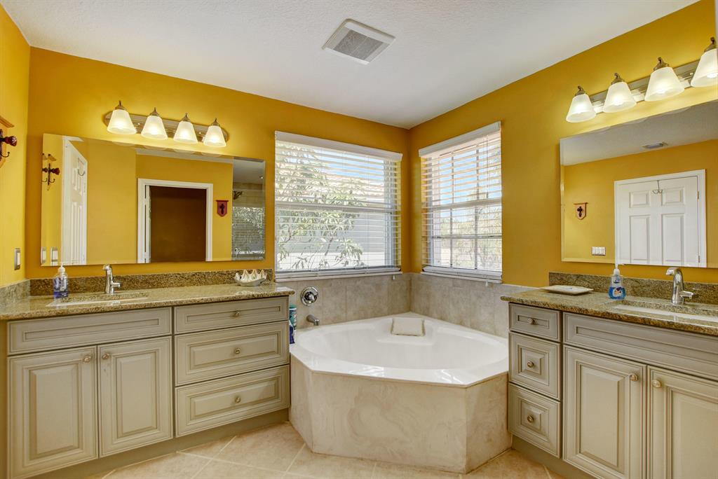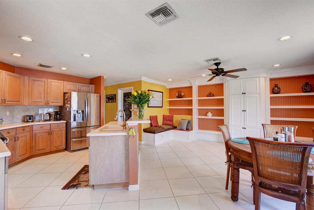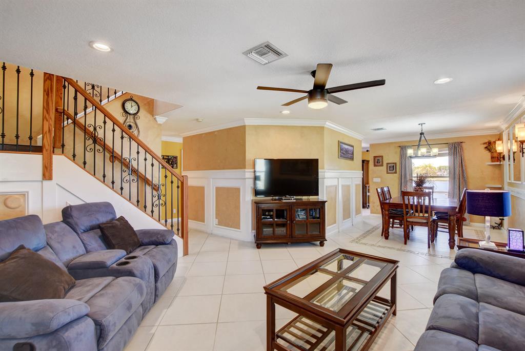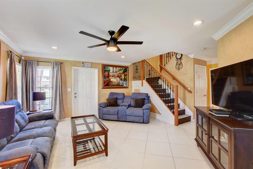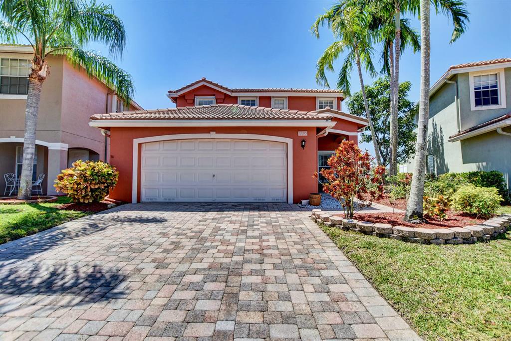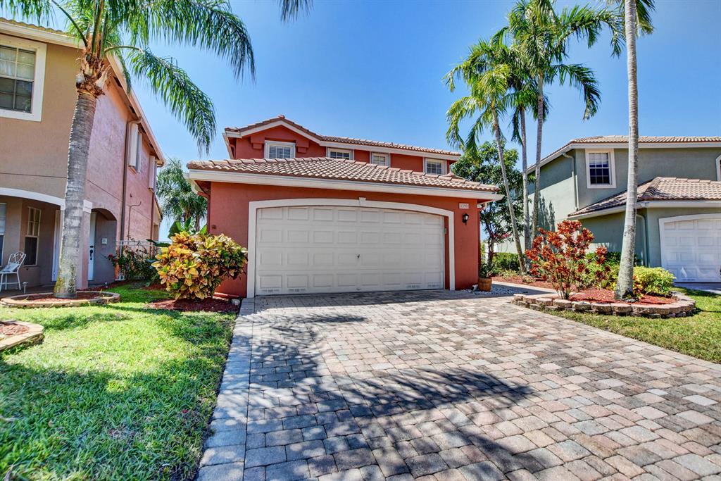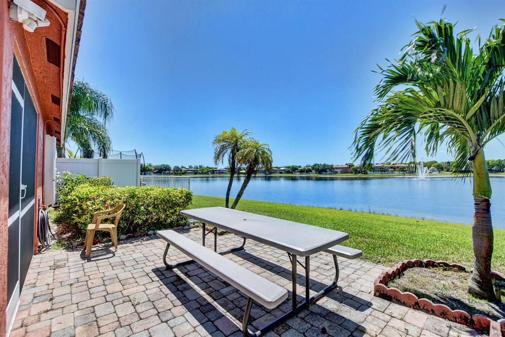 Enjoy the sparkling lakeview with a lighted fountain from most of this wonderfully updated home on the cul de sac! The open kitchen has top of the line solid wood cabinetry and practically new stainless appliances! All 3 bathrooms have been completely redone and there is NO carpet anywhere! The garage door has the Miami Dade hurricane rating and accordian shutters throughout. A/C is just over 3 years old. This home is spotless and totally move in ready. There is a nice resort style clubhouse and a manned gate as well as a camera system.