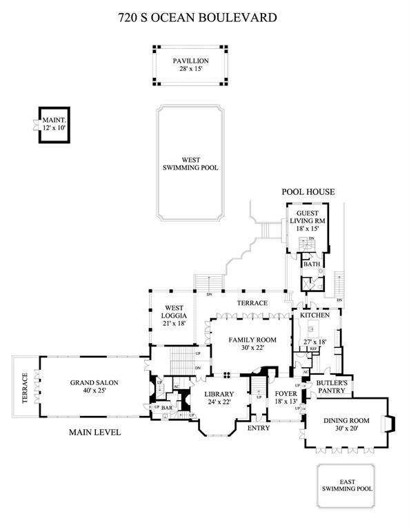 Spectacular Oceanfront Mizner compound with tennis court, sunrise and sunset swimming pools, and direct beachfront cabana. Gorgeous landmarked Estate with extensive and rich history features stunning architectural details and oversized fireplaces. Perfect for entertaining with sprawling grounds and large oceanfront dining room, library, and grand salon with wet bar. Expansive oceanfront Owner's Wing with sitting room, dual baths, study, and large open terrace. Highlights include 7+ bedrooms, 9 baths, 3 powder rooms, 3 car garage, and tennis pavilion. Fantastic Estate Section location with 180 feet+/- of ocean frontage.