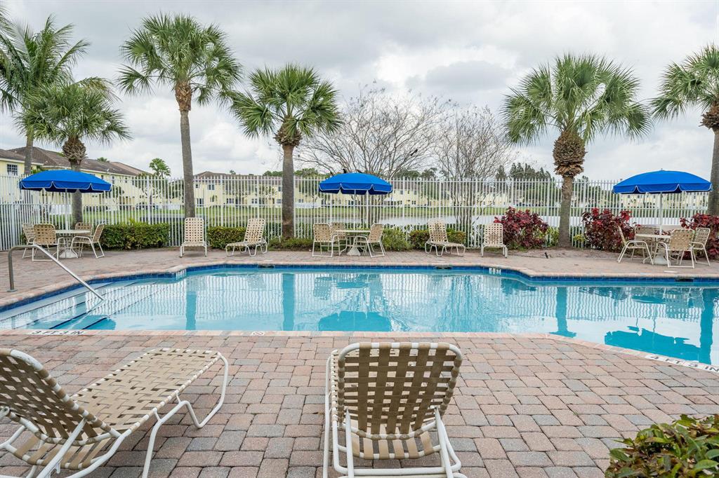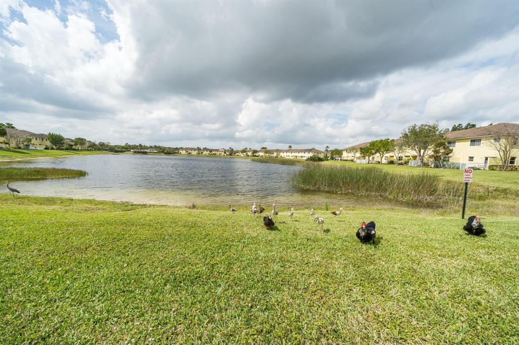 Spacious water view townhome with garage, built in 2005. Features include: Spacious Kitchen w/abundant storage, pantry & breakfast bar (refrigerator excluded) open to Living/Dining rooms with slider to covered patio and lovely, expansive water views. Convenient first floor half bath as well. Upstairs are two nicely-sized secondary bedrooms, full secondary bath and convenient Laundry Room. The Master Suite features TWO walk-in closets and Master Bath with large shower, dual sinks and linen closet. This gated community allows up to 3 pets (non-aggressive, up to 75 lbs), offers pool, tennis & more and is centrally located close to shopping, dining, PBI airport, beaches and commuter routes. Be sure to check out the great floor plan in the documents tab!