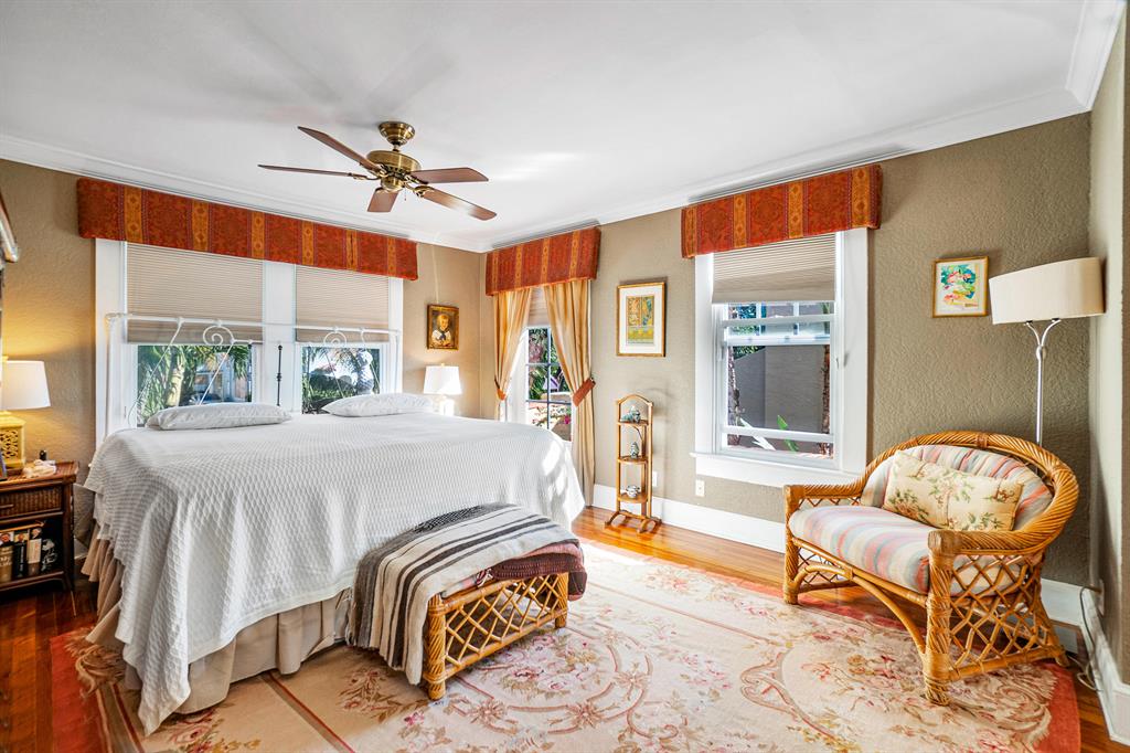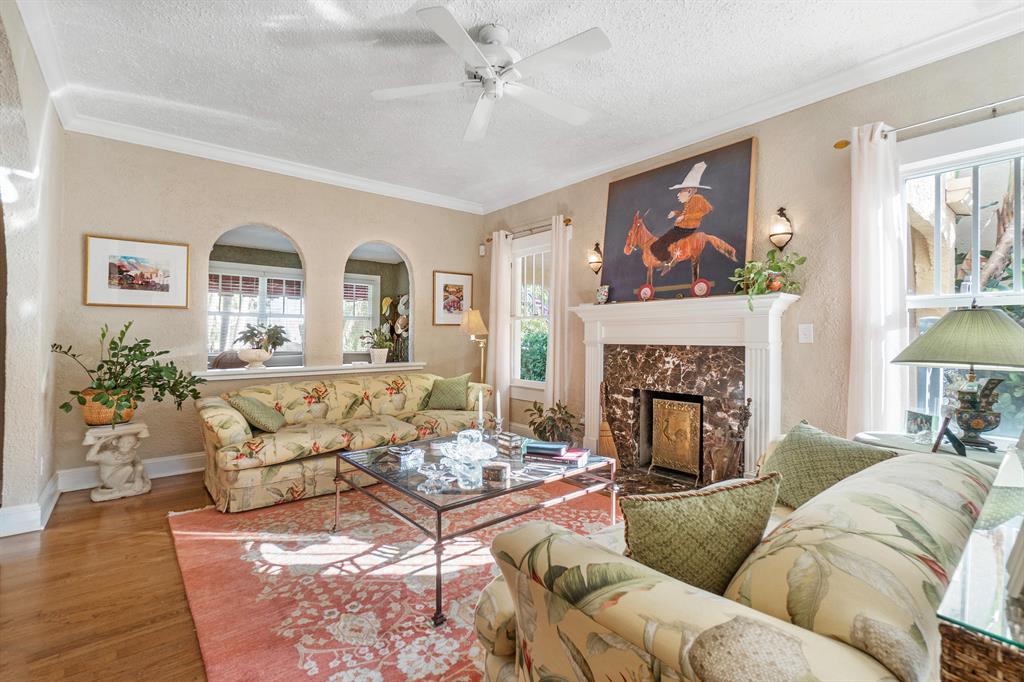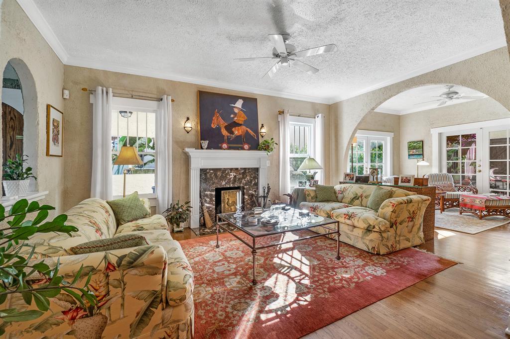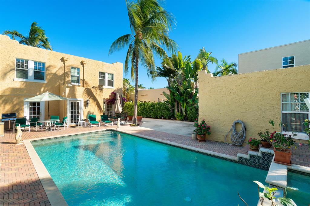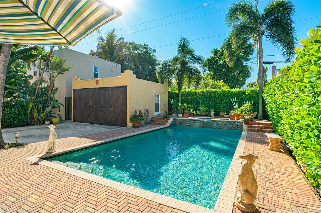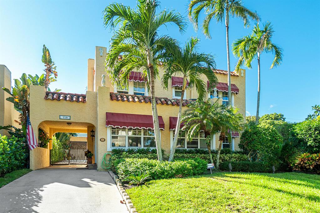 Magnificent 2-story Mediterranean Revival 3 bed, 2 1/2 bath at the top of the hill in the 700 block of Biscayne Dr. Imposing, grand rooms/features that include: wide staircase to the second floor with wide landing at the top; large traditional living room with family-like section that has French doors to the patio; tiled entry foyer/Florida room with open arches to the interior; much wide crown molding, pleasant, compact kitchen with ample laundry-closet-pantry area and 1/2 bath adjacent to a large formal dining room; wood floors; firelace, large en suite master and two sunny guest rooms. The home is in excellent condition. The exterior features include a long, gated driveway to a 2-car garage, currently used for storage, large heated pool with spa, lots of outside patio areas to enjoy!