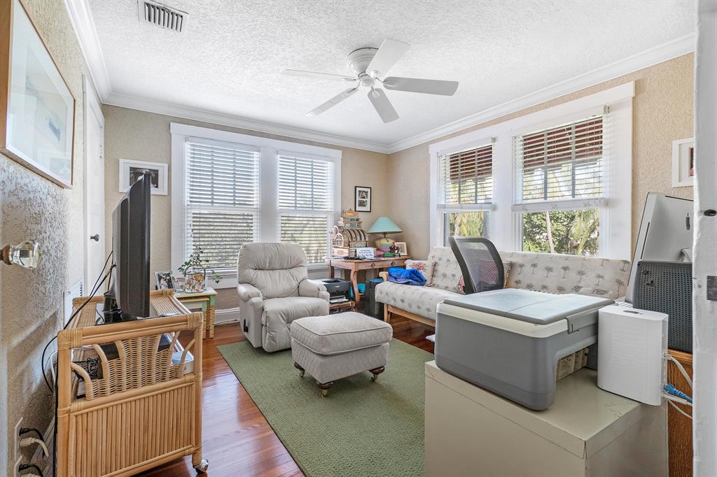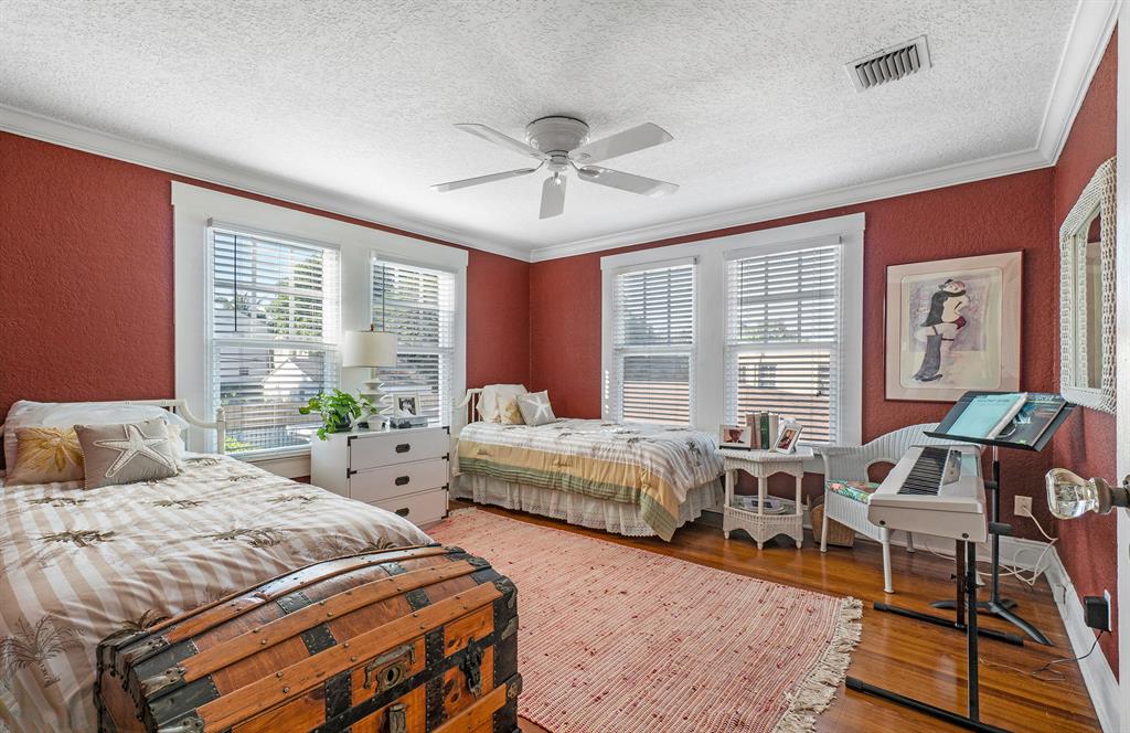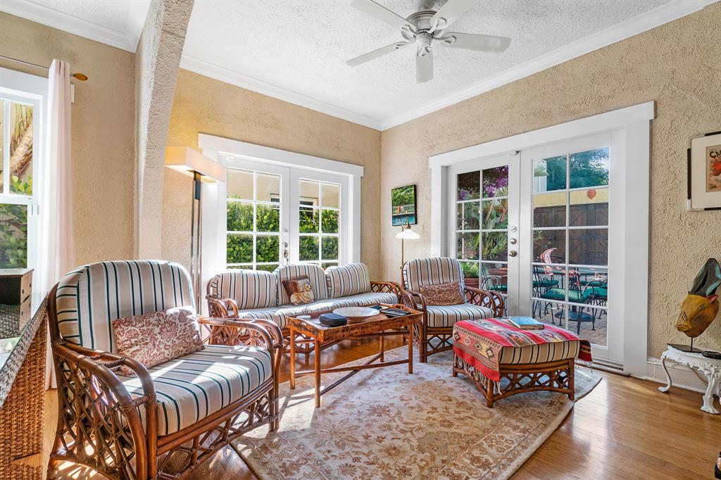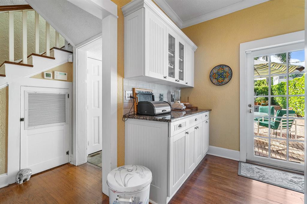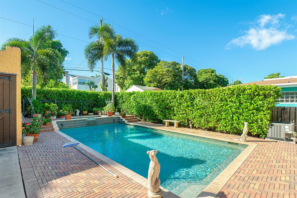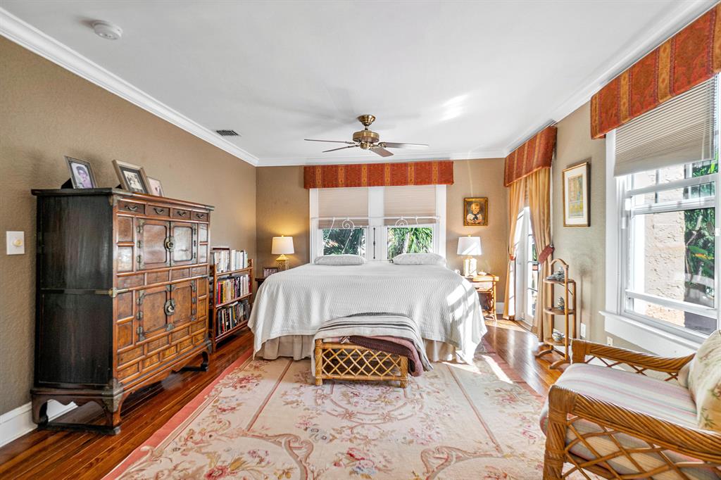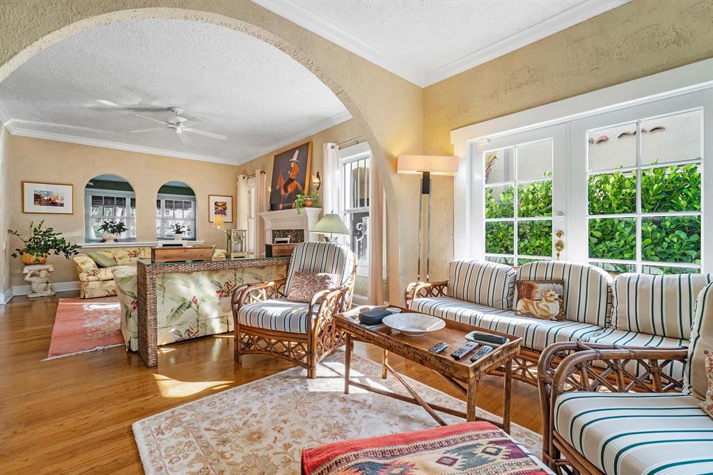 Magnificent 2-story Mediterranean Revival 3 bed, 2 1/2 bath at the top of the hill in the 700 block of Biscayne Dr. Imposing, grand rooms/features that include: wide staircase to the second floor with wide landing at the top; large traditional living room with family-like section that has French doors to the patio; tiled entry foyer/Florida room with open arches to the interior; much wide crown molding, pleasant, compact kitchen with ample laundry-closet-pantry area and 1/2 bath adjacent to a large formal dining room; wood floors; firelace, large en suite master and two sunny guest rooms. The home is in excellent condition. The exterior features include a long, gated driveway to a 2-car garage, currently used for storage, large heated pool with spa, lots of outside patio areas to enjoy!