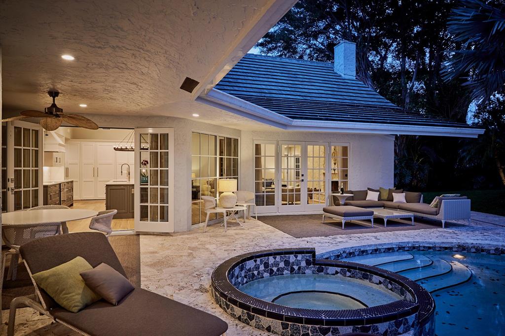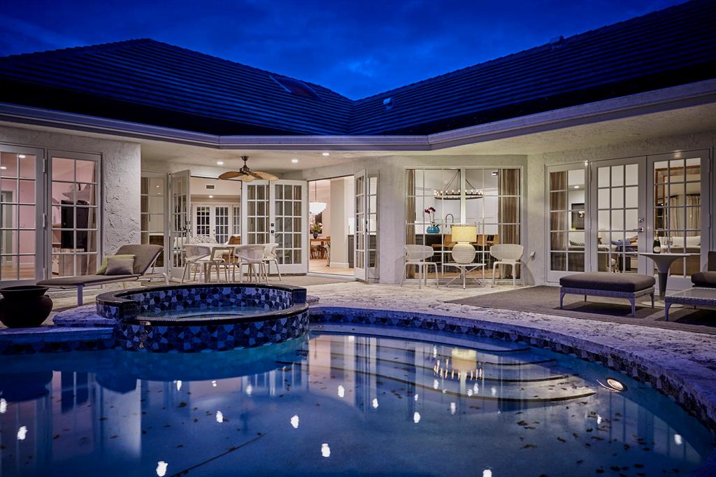 Beautiful one story house featuring 4 bedrooms and 4 baths plus office/den fully renovated by a European designer with marble and engineered wooden floors and a large chef's kitchen designed for a synergy of indoor/outdoor living. All rooms open via French doors to a private pool and garden area with an outside grill, dining and living space surrounded by fruit trees. The full renovation includes hurricane impact windows and doors, new roofing, garage doors, floors, electrical plumbing, dual AC, water heater, a new pool heating system, LED lights and an electric car charger. The information herein is deemed reliable and subject to errors, omissions and changes without notice. All measurements are approximate.