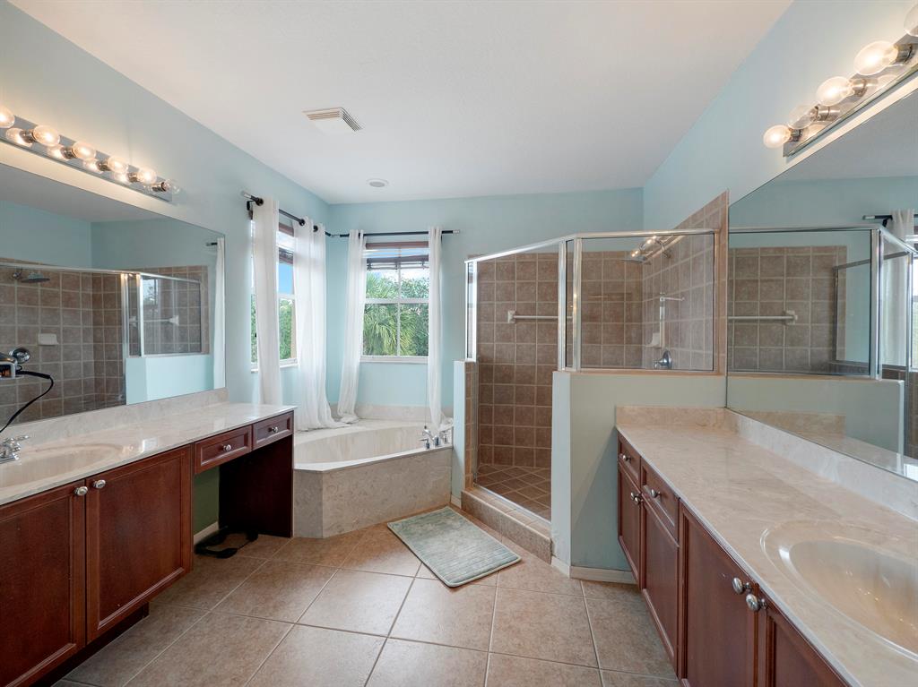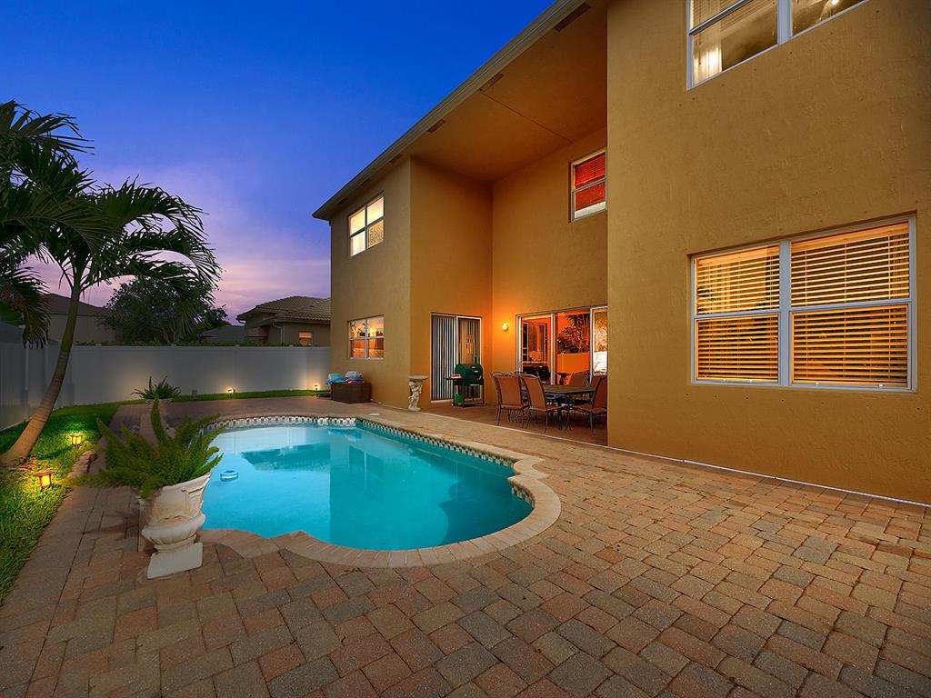Stunning and spacious 6-bedroom pool home centrally located minutes from the turnpike located in Palisades; a cozy gated community of only 41 homes. Dual garages 2 car & 1 car/golf cart & expansive paver driveway. Exterior has been recently painted . One full bedroom downstairs with a full bath & walk in shower. New wood look Mohawk flooring, formal living & dining rooms, family room, large kitchen w/plenty of storage. Sellers just resurfaced the pool, replaced the pump and installed a led color changing light with 10 fixed colors and 7 color light shows. They also installed a new fence and landscaping. Master has tranquil water views of the lake, dual vanities in the bathroom and a garden tub. New AC downstairs and 2 Nest controllers.
