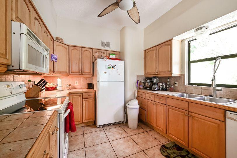 This beautiful Spanish Styled home boasts a bright open floor plan ideal for today's lifestyle in the heart of West Palm Beach that is close to the beach and all the main attractions including art galleries, shopping, fine dining and fashion boutiques. Great opportunity to live and have rental income, also perfect for extended family! This spacious 3 bedroom 2 bath home has beautiful hardwood and ceramic tile floors featuring a Coved ceiling in the living dining area. The large 850 square foot 1 bedroom/1 bath apartment with its own fenced yard. The gorgeous interior melds rural charm with modern amenities to create an ideal ambiance for family and friends. The property spans over 1/3 acre (5 city lots) walk across the lush lawn to pick your own fruit from the mature Avocado, starfruit