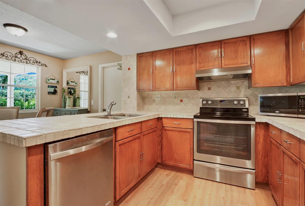 Beautifully renovated 3 bedroom, 2 bathroom home in the desirable community of Fairfield at Boca. Spacious and open floor plan featuring stunning volume ceilings in the living room with plenty of natural light. Beautiful wood flooring thru-out the living areas. Upgraded tile flooring in the 3 bedrooms. Both bathrooms have been recently renovated. The kitchen is open to the living space and features wood cabinetry, tumblestone marble countertops, and stainless steel appliances. Double door entry into the master suite with walk-in closet and upgraded master bathroom. The outdoor area is absolutely spectacular. Relax on your back patio with a view of beautiful large oak trees. Prime corner unit location featuring a long driveway for added parking and a 1 car garage. New A/C and Water Heater!