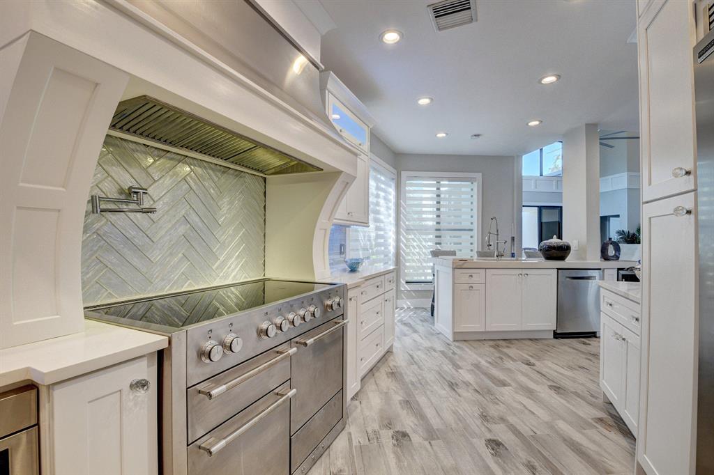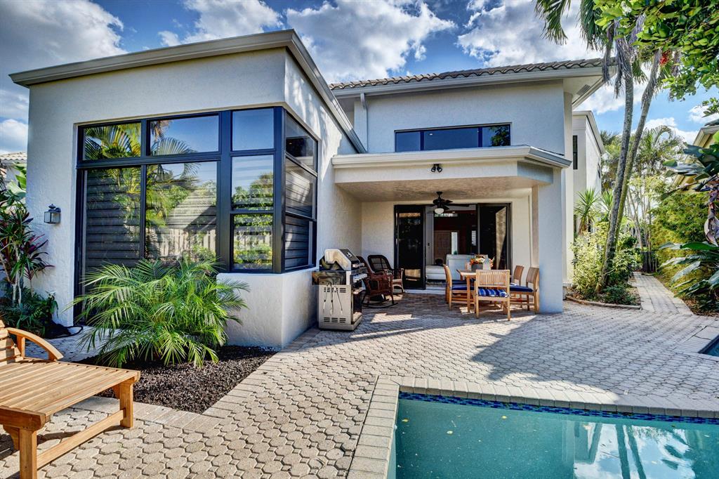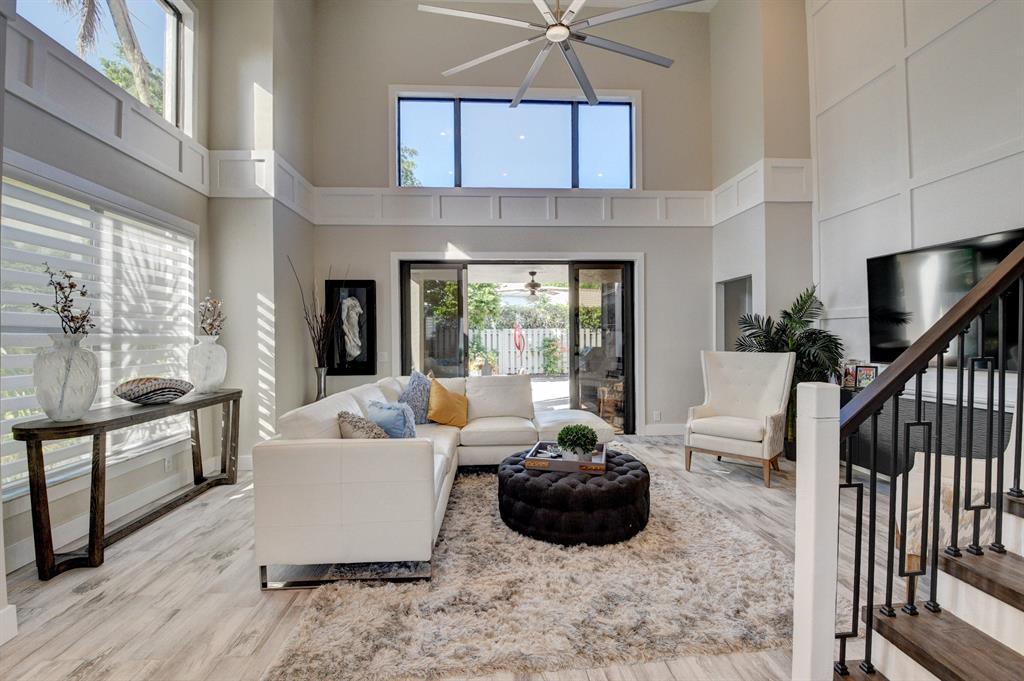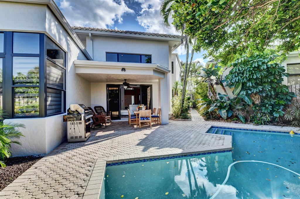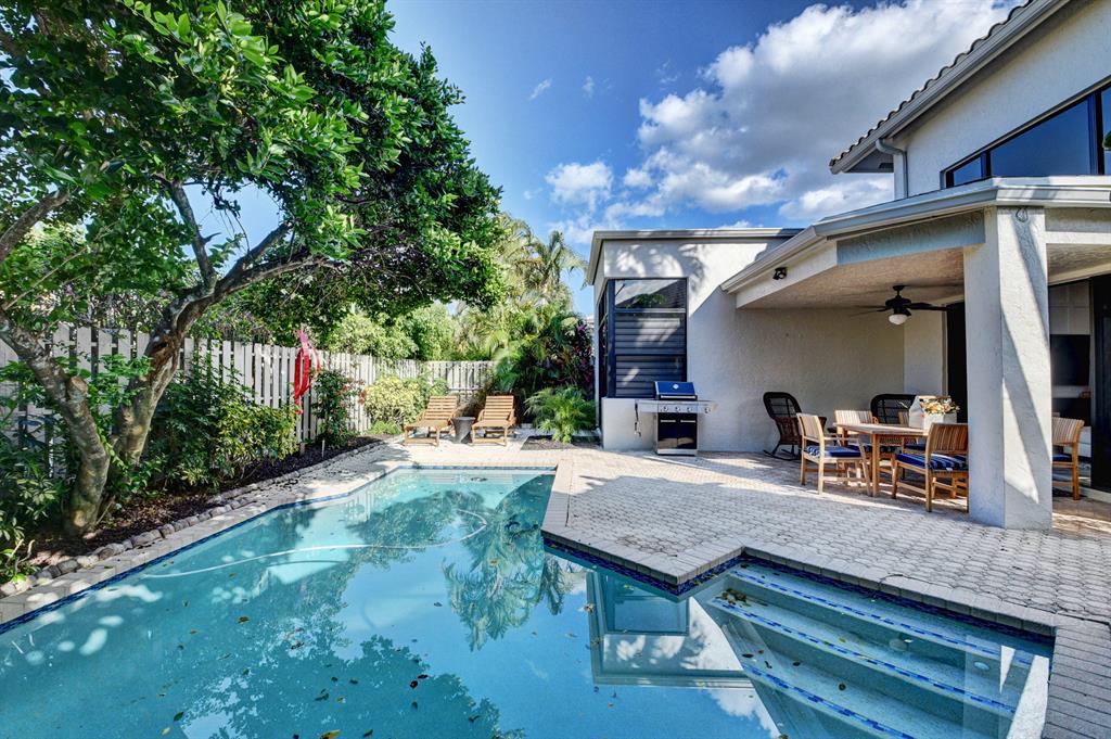 :Wow! A contemporary remodeled 3 bedroom 2.5 bath home that is just beautiful! Porcelain floors, volume ceiling, open floor plan, lots of natural light, master down with an amazing 400 sq. ft marble bath room, which will amaze you. Walk in fitted closets, fabulous built-ins, and what everyone wants smooth walls! Other features include a Chef's kitchen, white cabinets, quartz counters, Bosch appliances, 48'' induction stove built in bar all open to the living area. Enjoy the private back yard with a covered patio, lush landscaping as you swim and bask in the sun while enjoying the Florida lifestyle. One of the very few homes remodeled in Broken Sound do not miss out!!!