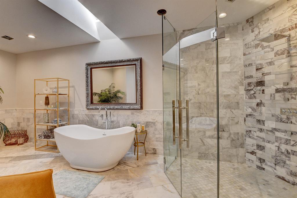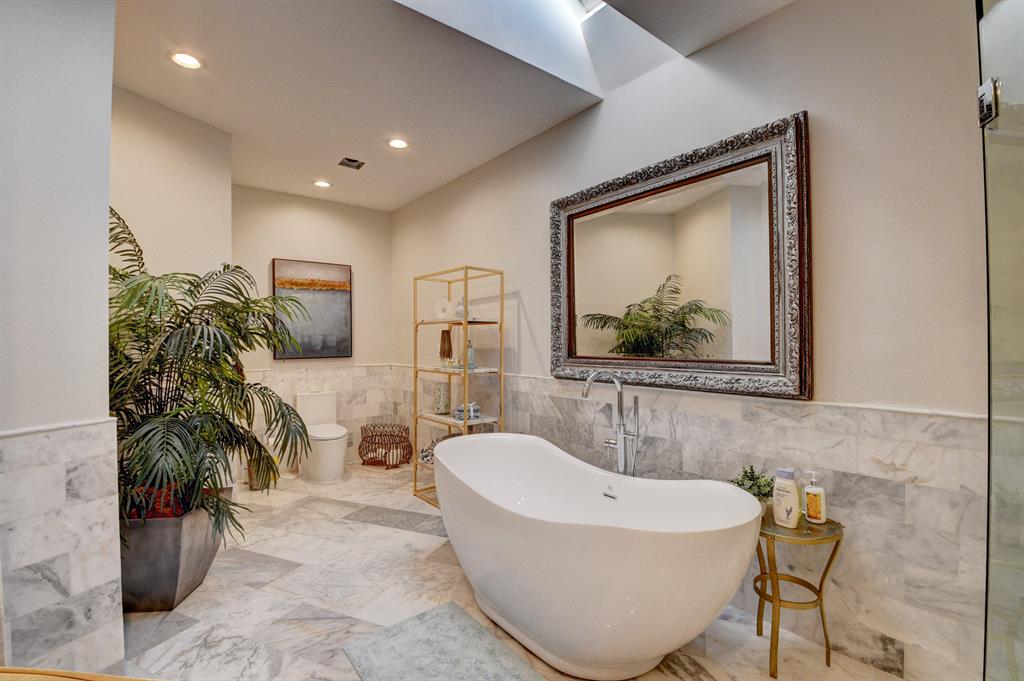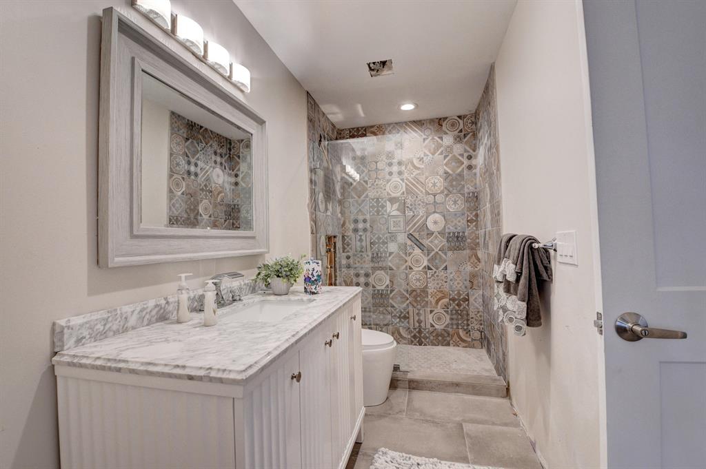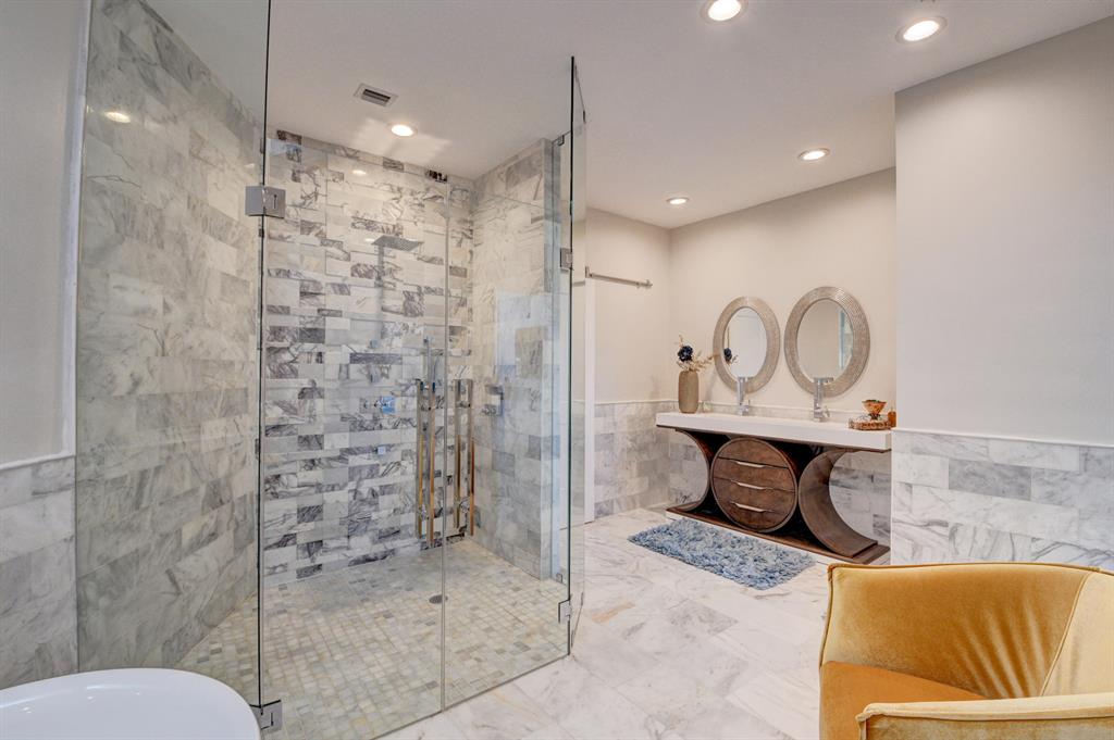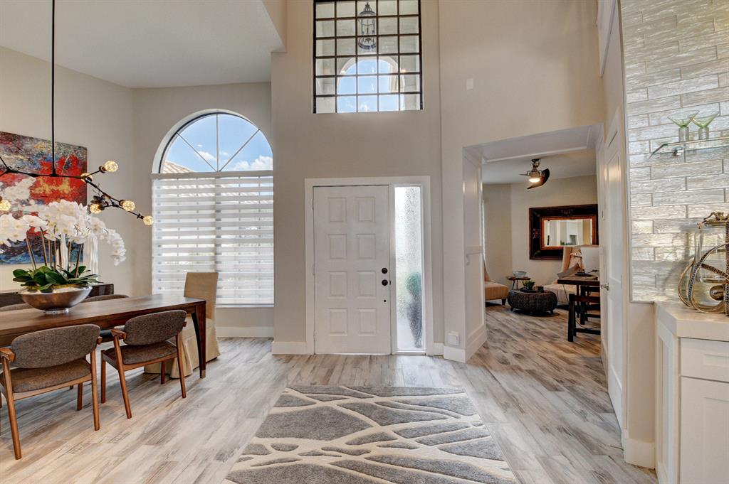 :Wow! A contemporary remodeled 3 bedroom 2.5 bath home that is just beautiful! Porcelain floors, volume ceiling, open floor plan, lots of natural light, master down with an amazing 400 sq. ft marble bath room, which will amaze you. Walk in fitted closets, fabulous built-ins, and what everyone wants smooth walls! Other features include a Chef's kitchen, white cabinets, quartz counters, Bosch appliances, 48'' induction stove built in bar all open to the living area. Enjoy the private back yard with a covered patio, lush landscaping as you swim and bask in the sun while enjoying the Florida lifestyle. One of the very few homes remodeled in Broken Sound do not miss out!!!